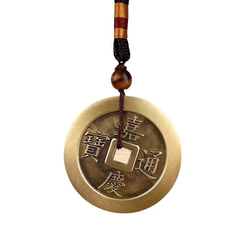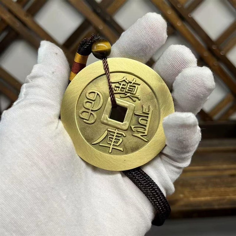 纯黄铜五帝钱压门槛入户门大号铜钱挂件古币顺治乾隆康熙通宝摆件