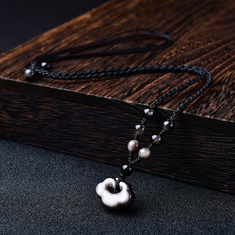 黑曜石银曜石小祥云吊坠diy祥云配件情侣锁骨链钥匙扣爆款七夕
