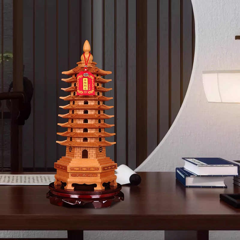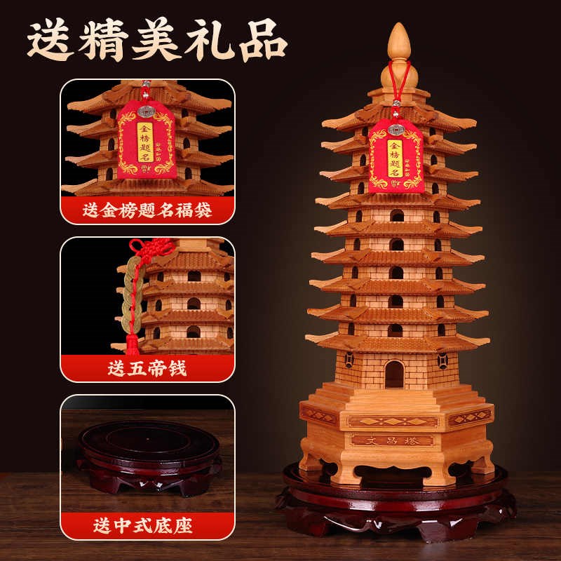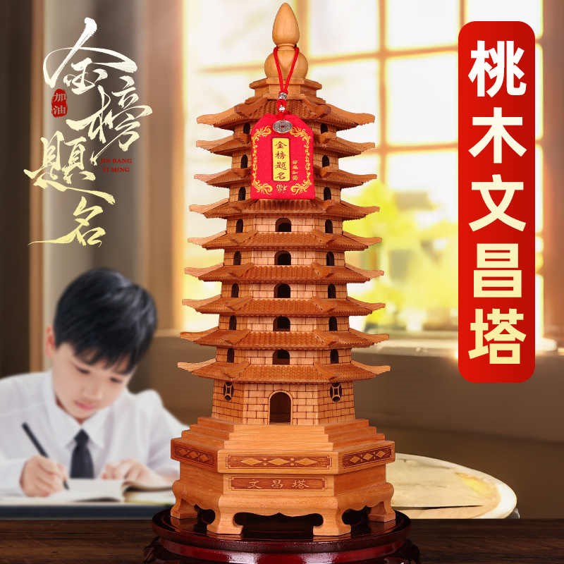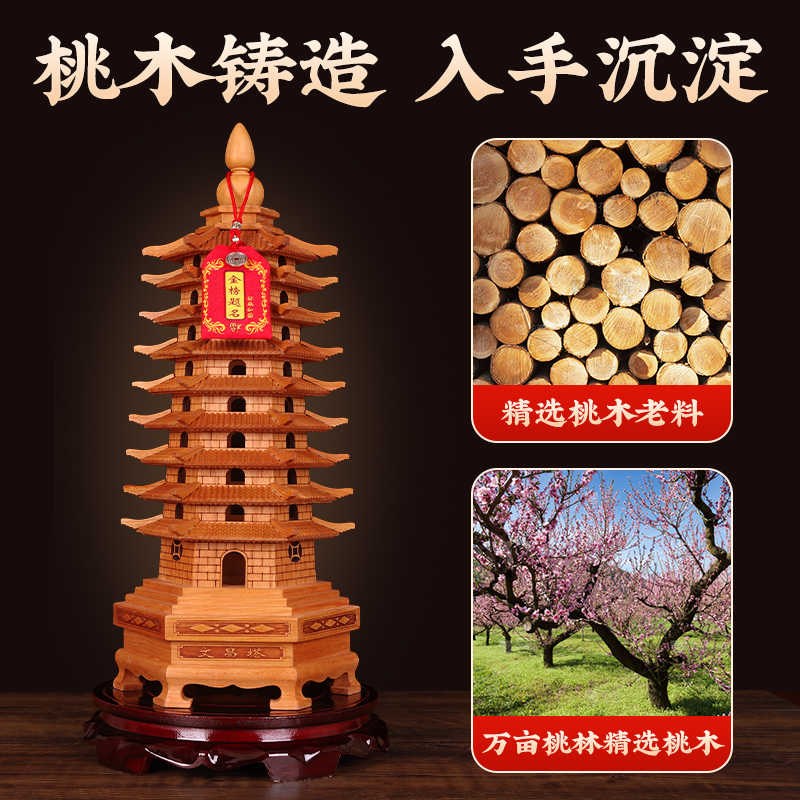 桃木文昌塔摆件实木质七层九层十三层学生用书房书桌面摆设装饰品