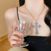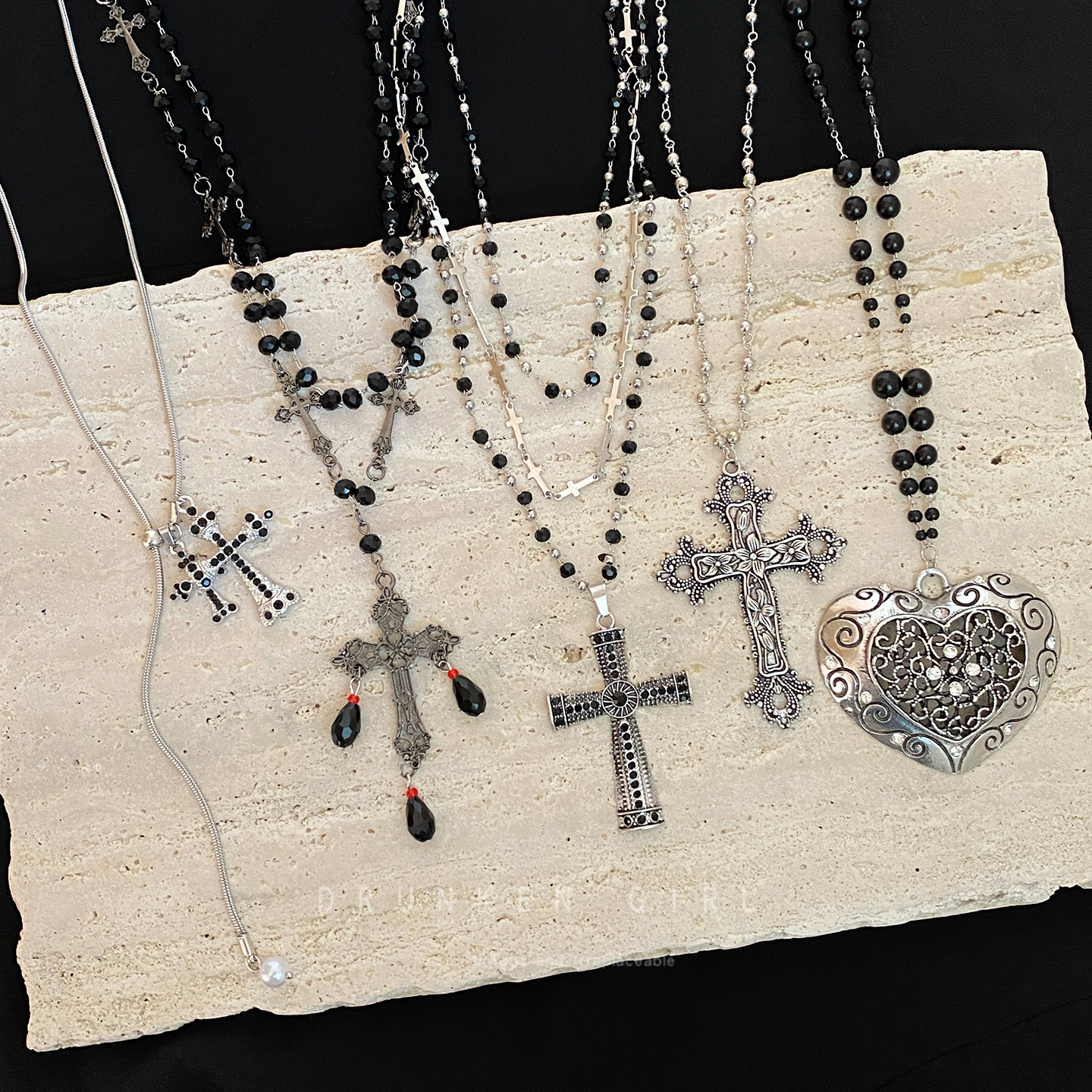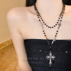 古早黑色十字架项链秋冬千禧亚比颈链y2k颈饰复古长款叠戴毛衣链