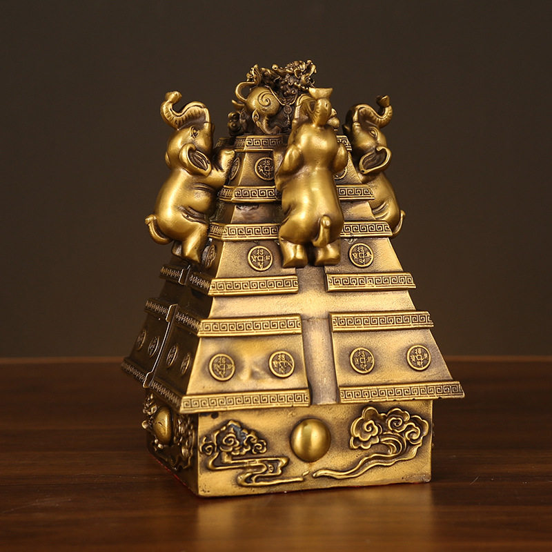 纯黄铜大象摆件财象高升招财中式吉祥物客厅玄关店铺办公室装饰品