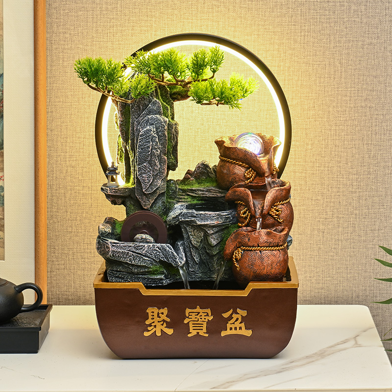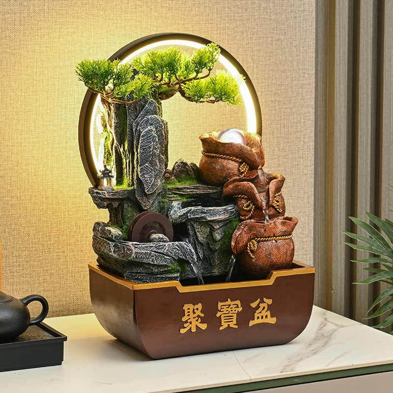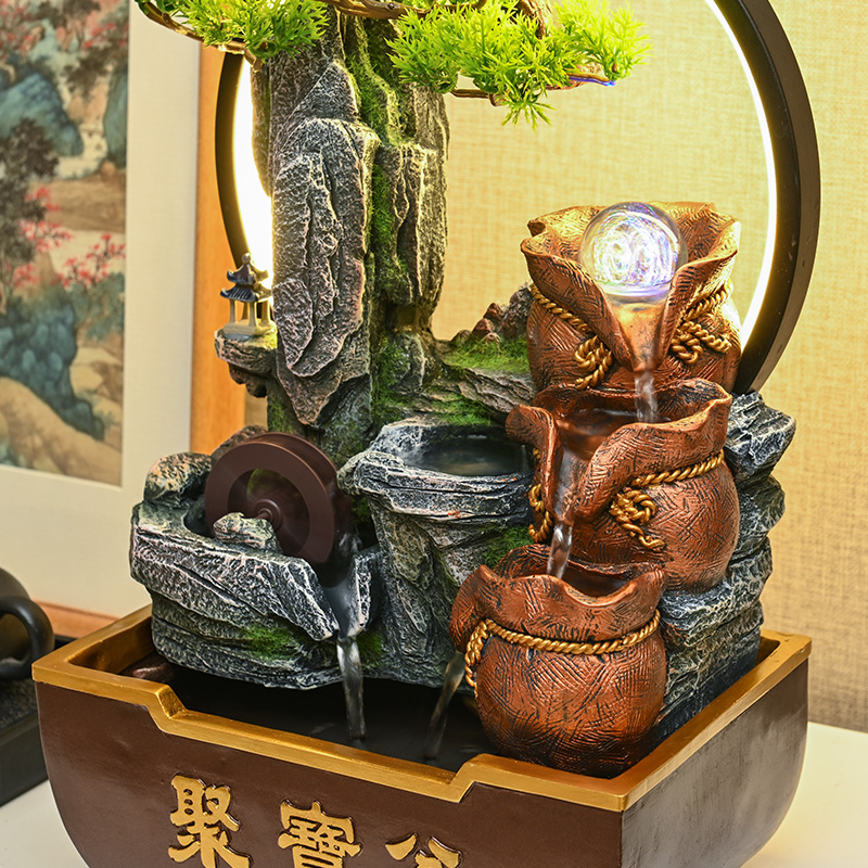 假山流水生财摆件循环水造景装饰客厅茶室桌面风水轮乔迁开业礼物