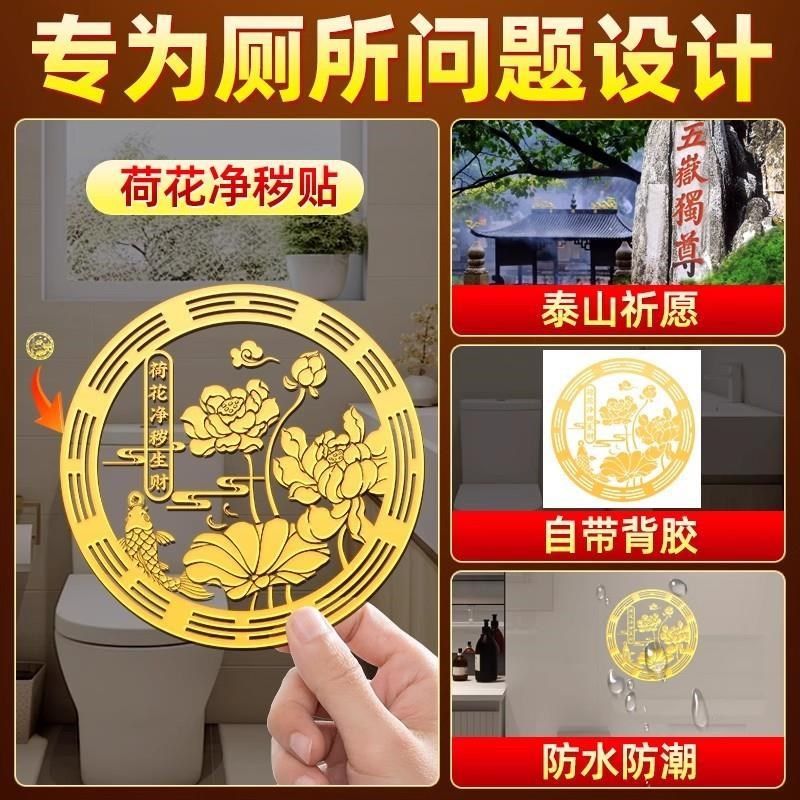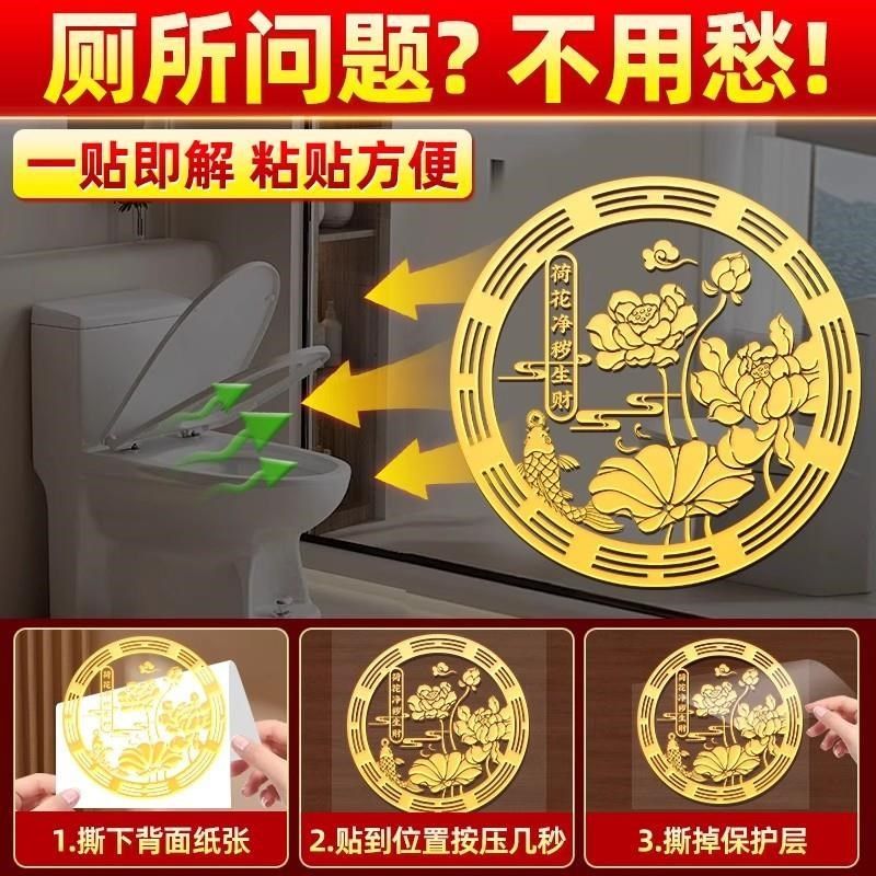 荷花鲤鱼贴卫生间净秽金属贴鲤鱼莲花厕所正东西北对门上挂件贴纸