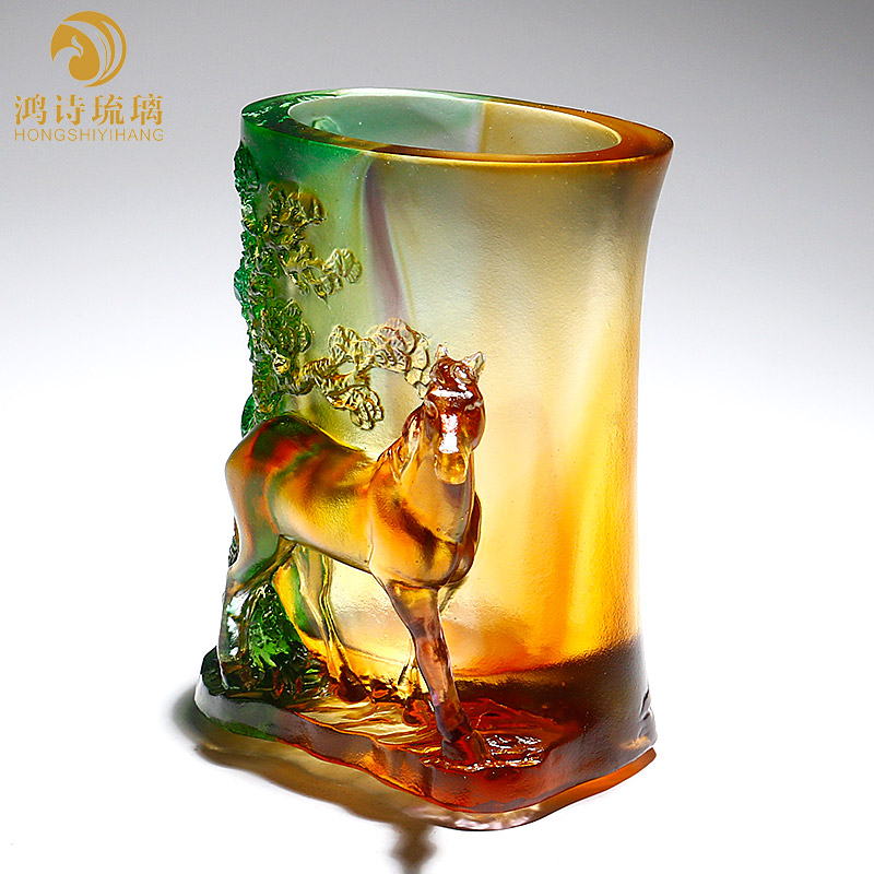 琉璃马笔筒摆件办公室老板桌面装饰品送领导生日礼物升Z职定制刻