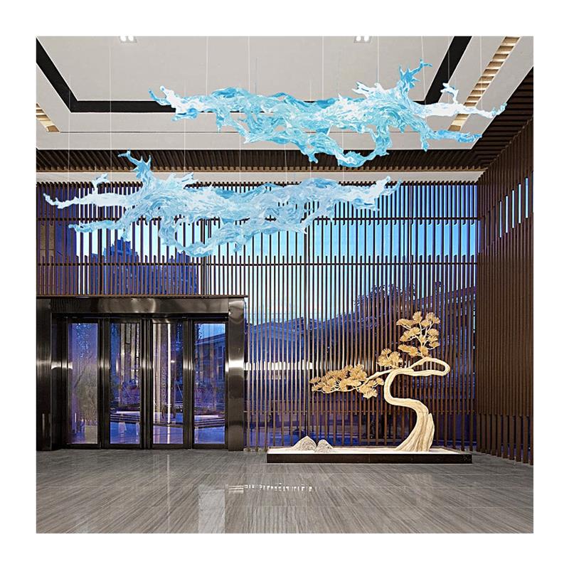 现代透明树脂浪花雕塑吊饰婚庆大堂天花板别墅软装悬空中水花挂件