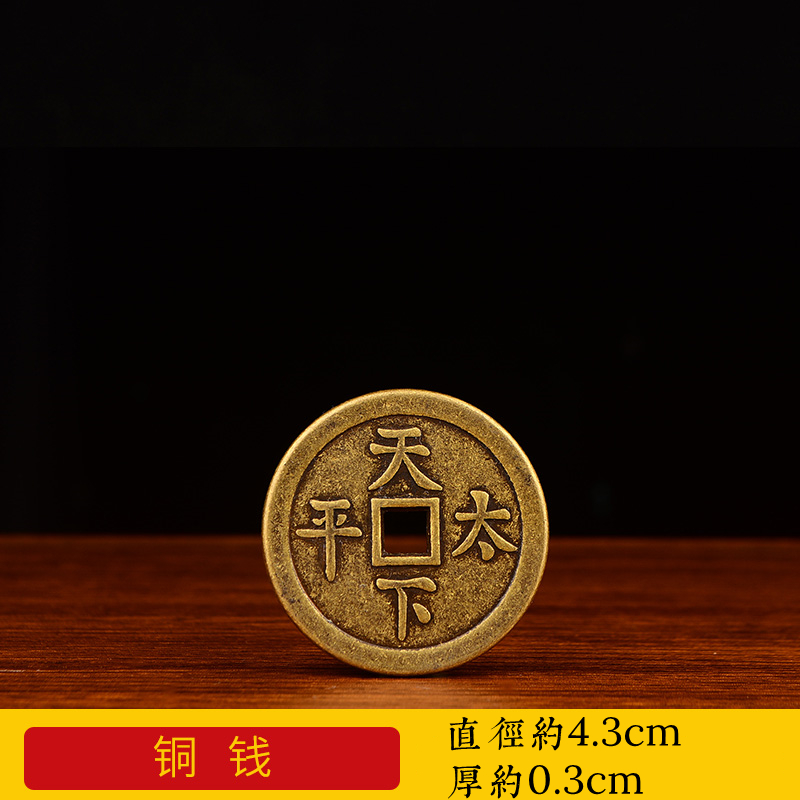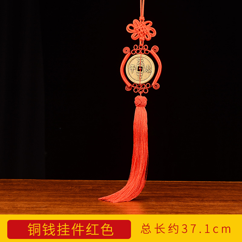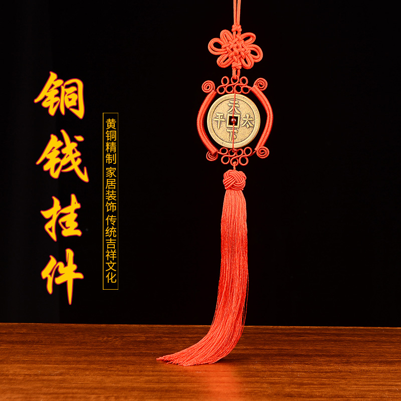 纯黄铜天下太平加厚铜钱吉祥物红黄绳中国结挂件汽车入户门窗户挂
