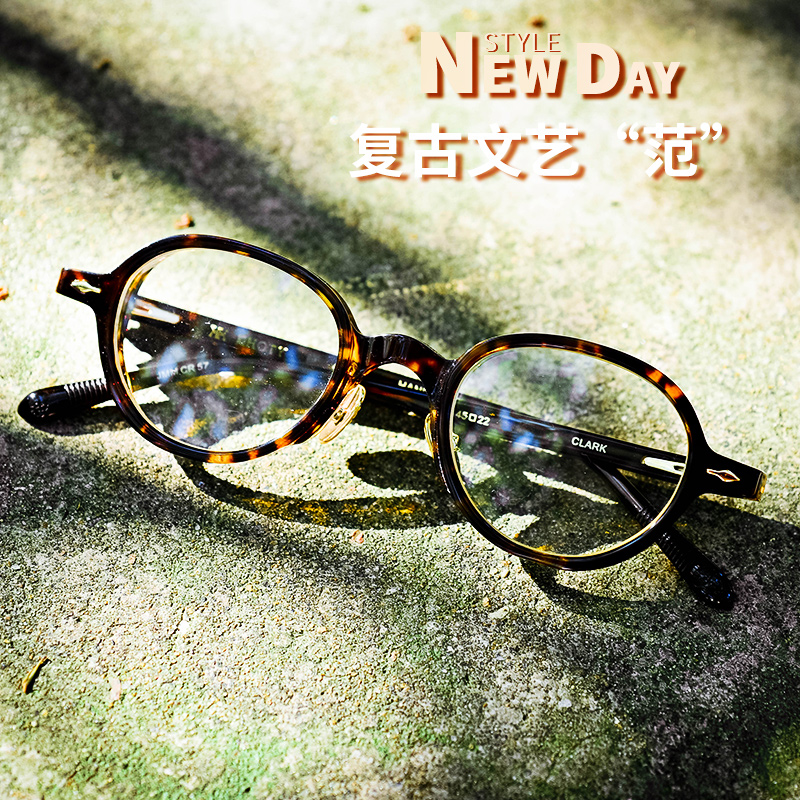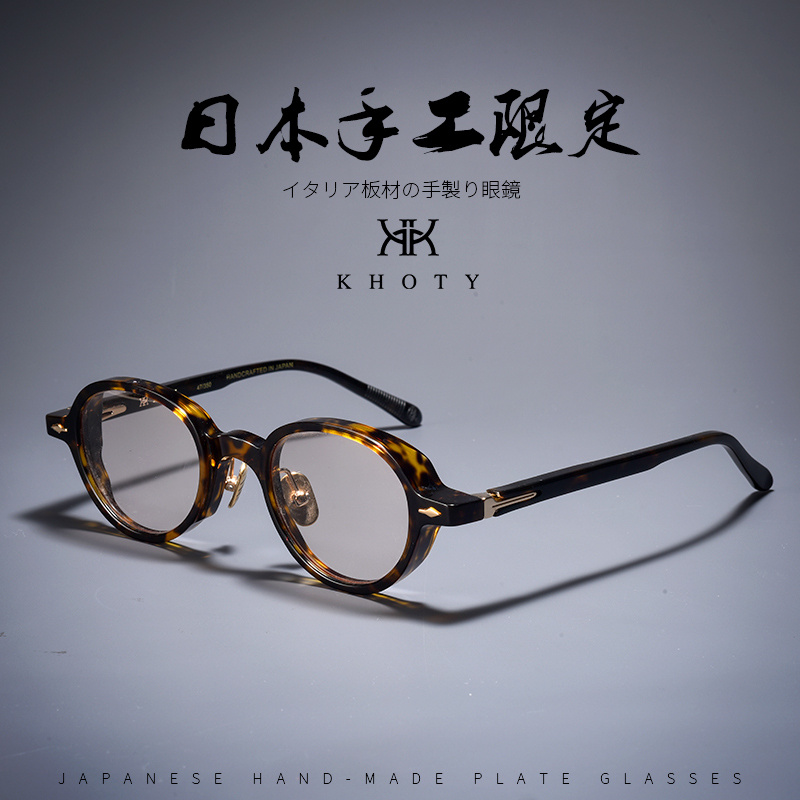 日本手制小圆框KHOTY复古意大利板材眼镜男防蓝光近视镜架女时尚