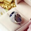 vintage彩宝高级感蓝宝石戒指女开口可调节 满钻ins轻奢气质百搭
