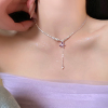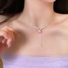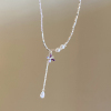 超仙轻奢紫色碎银珍珠锆石蝴蝶流苏锁骨链女小众甜美气质百搭配饰