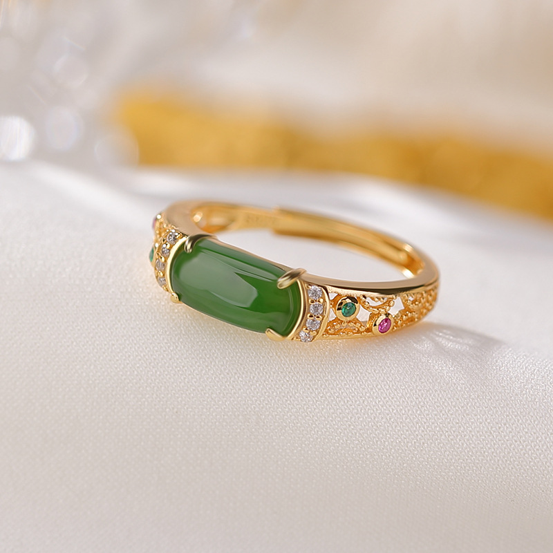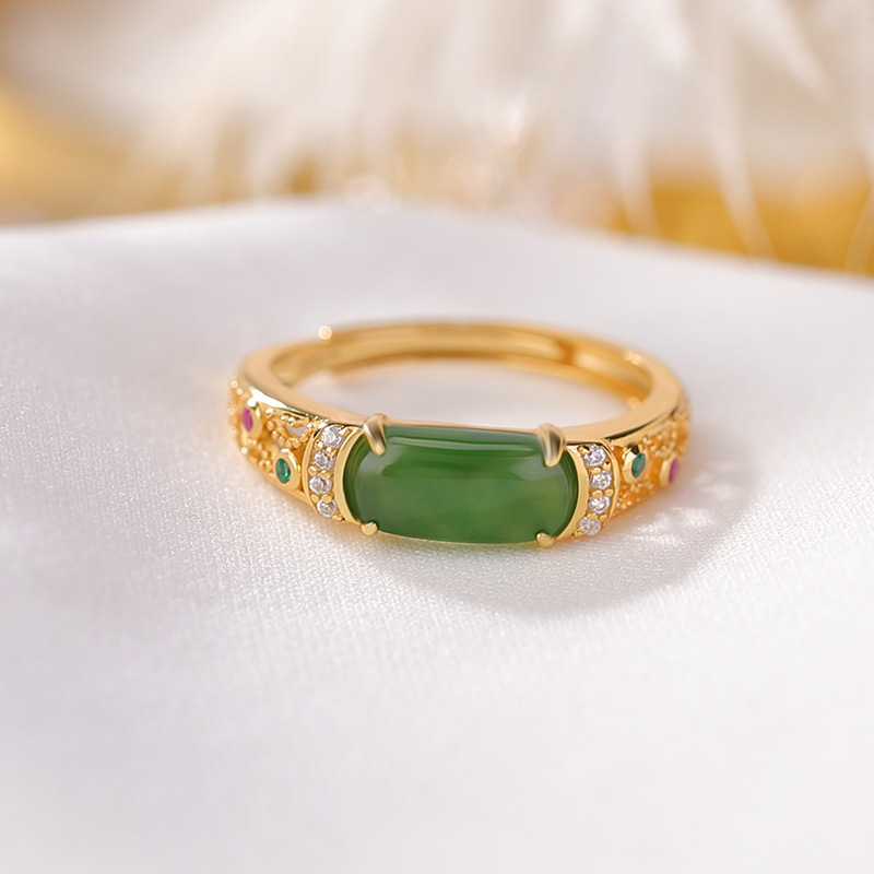 山予棠S925纯银镀金和田玉碧玉复古轻奢个性马鞍戒指时尚百搭指环