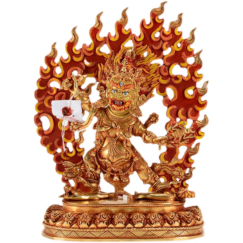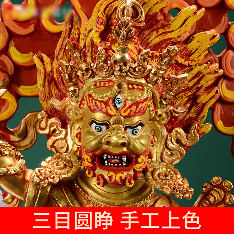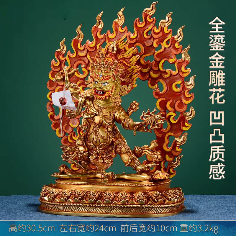 尼泊尔手工雕花全鎏金愤怒莲师家用铜像居家桌面摆件10寸