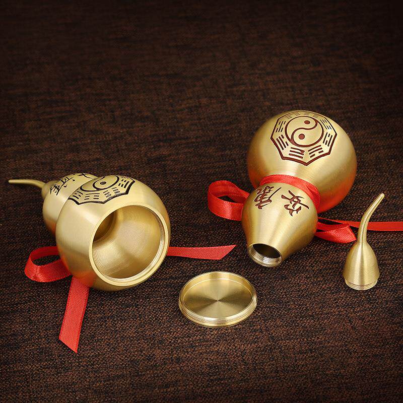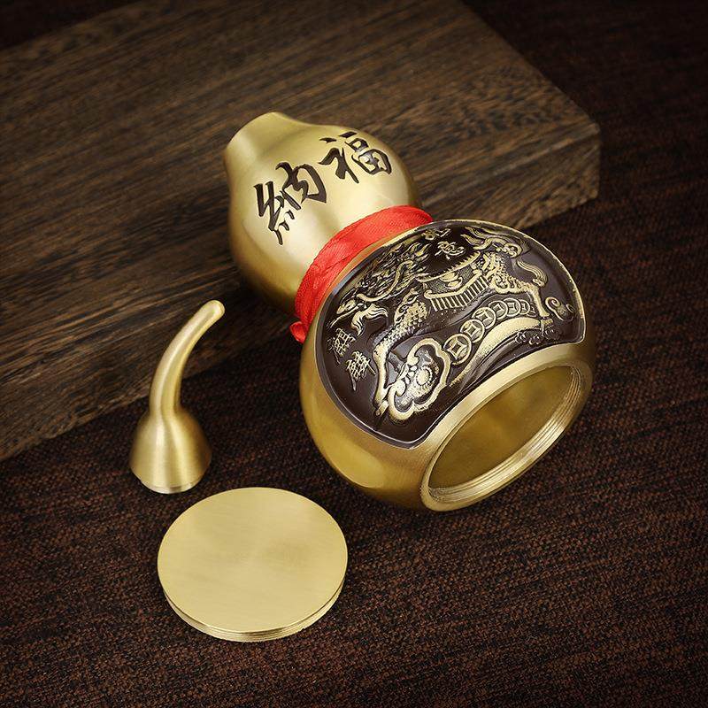 铜葫芦摆件纯黄铜开口葫芦家居办公室装饰工艺礼品铜制