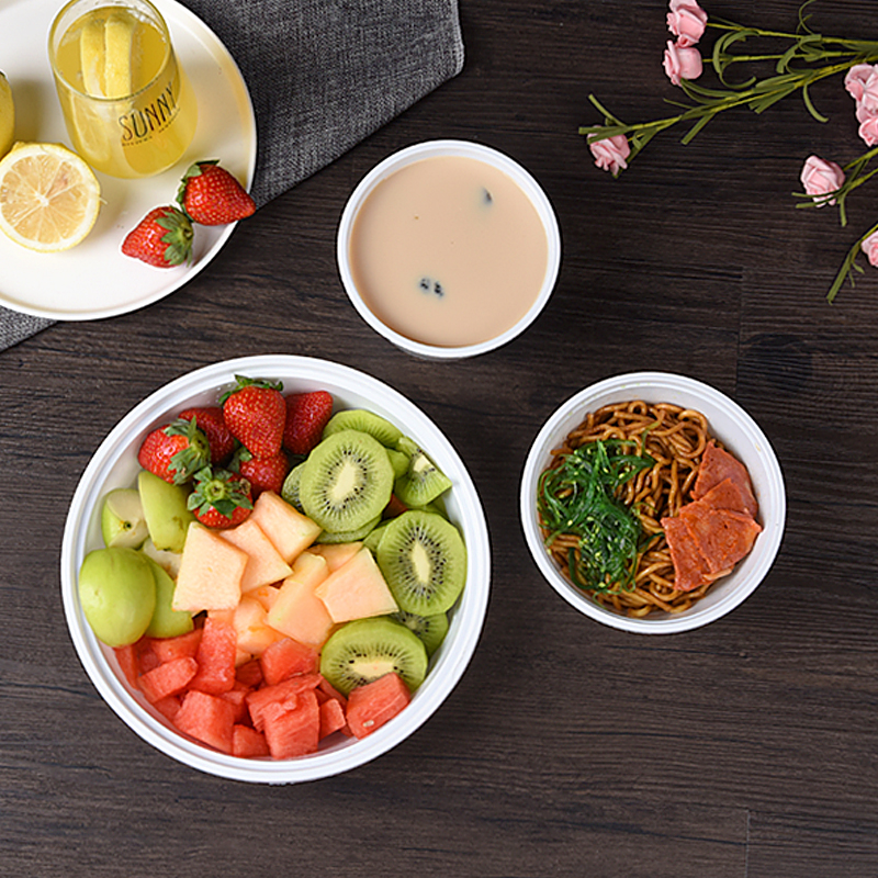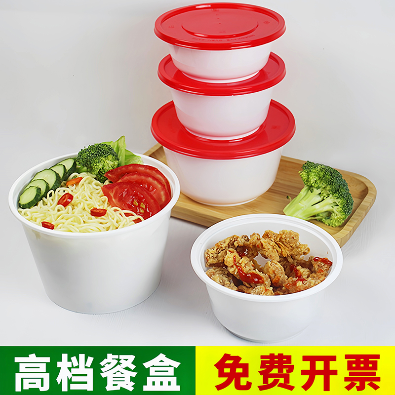 一次性碗塑料圆形快餐白色商用打包盒带盖食品级家用餐饮汤碗1250