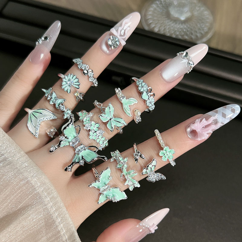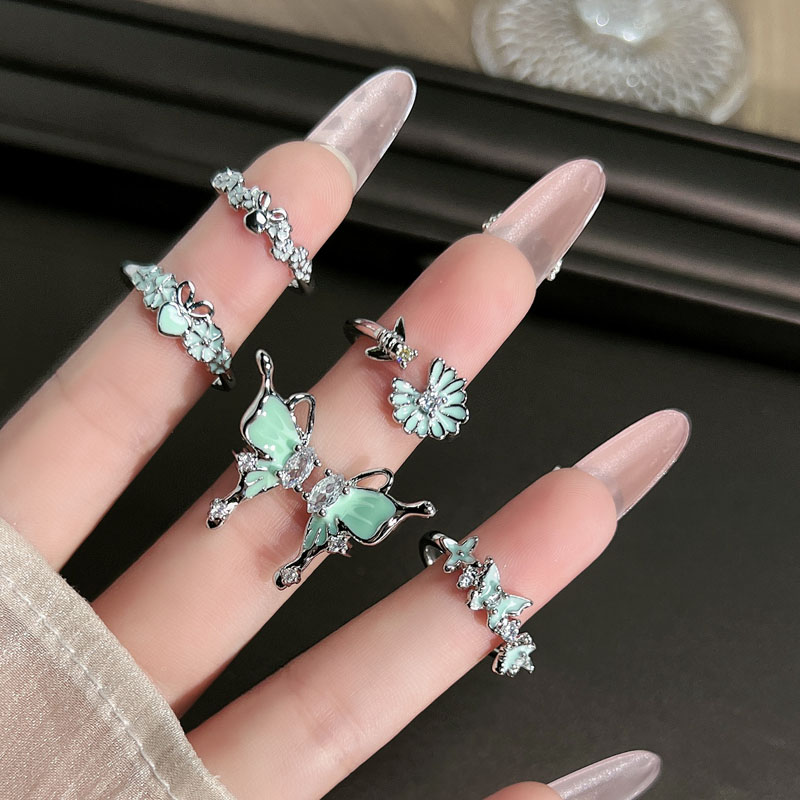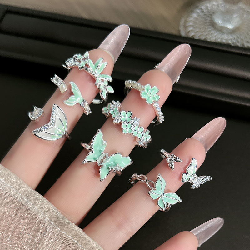 曼波绿蝶森系简约清新绿色珐琅蝴蝶戒指女爆款鱼尾时尚冷淡风指环