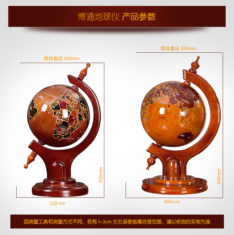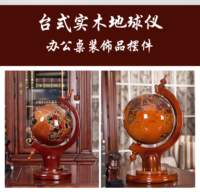 博通 实木地球仪 办公桌摆放工艺品仿古木质桌面装饰礼品家居摆件