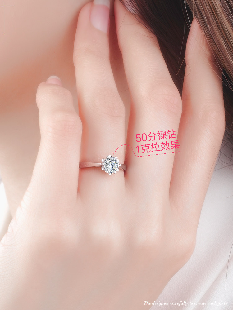 我爱钻石网钻戒女求婚戒指一克拉正品30分婚戒订婚结婚天然真钻