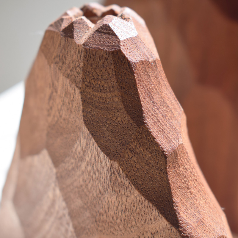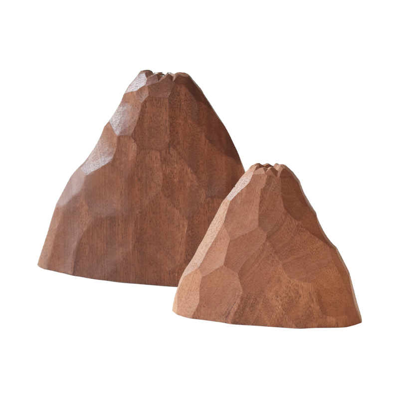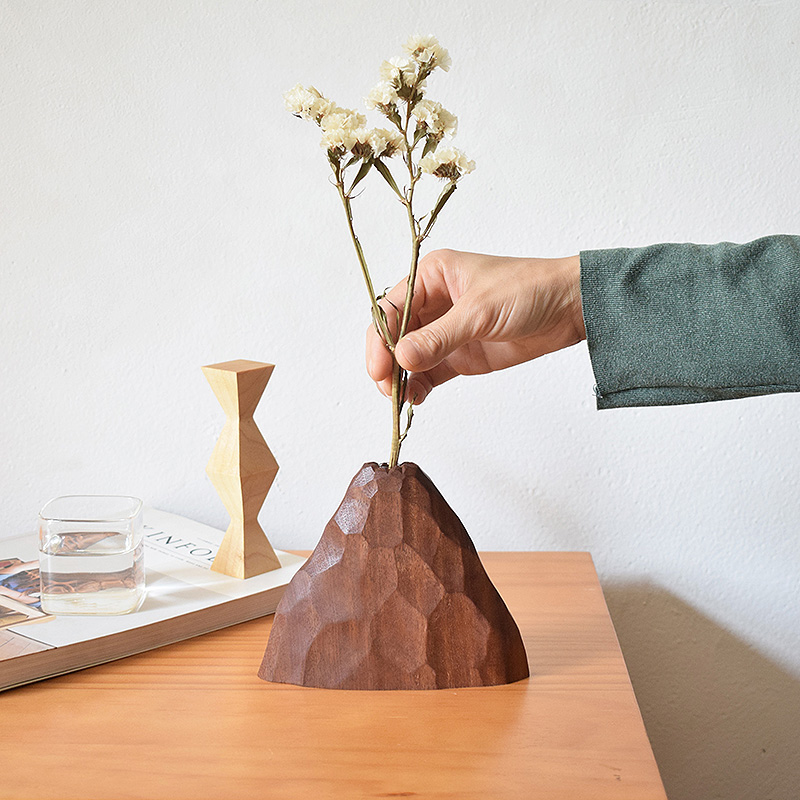 象有形/原日f式创实木雕刻禅意火山造型花插玄关办公桌装饰摆件