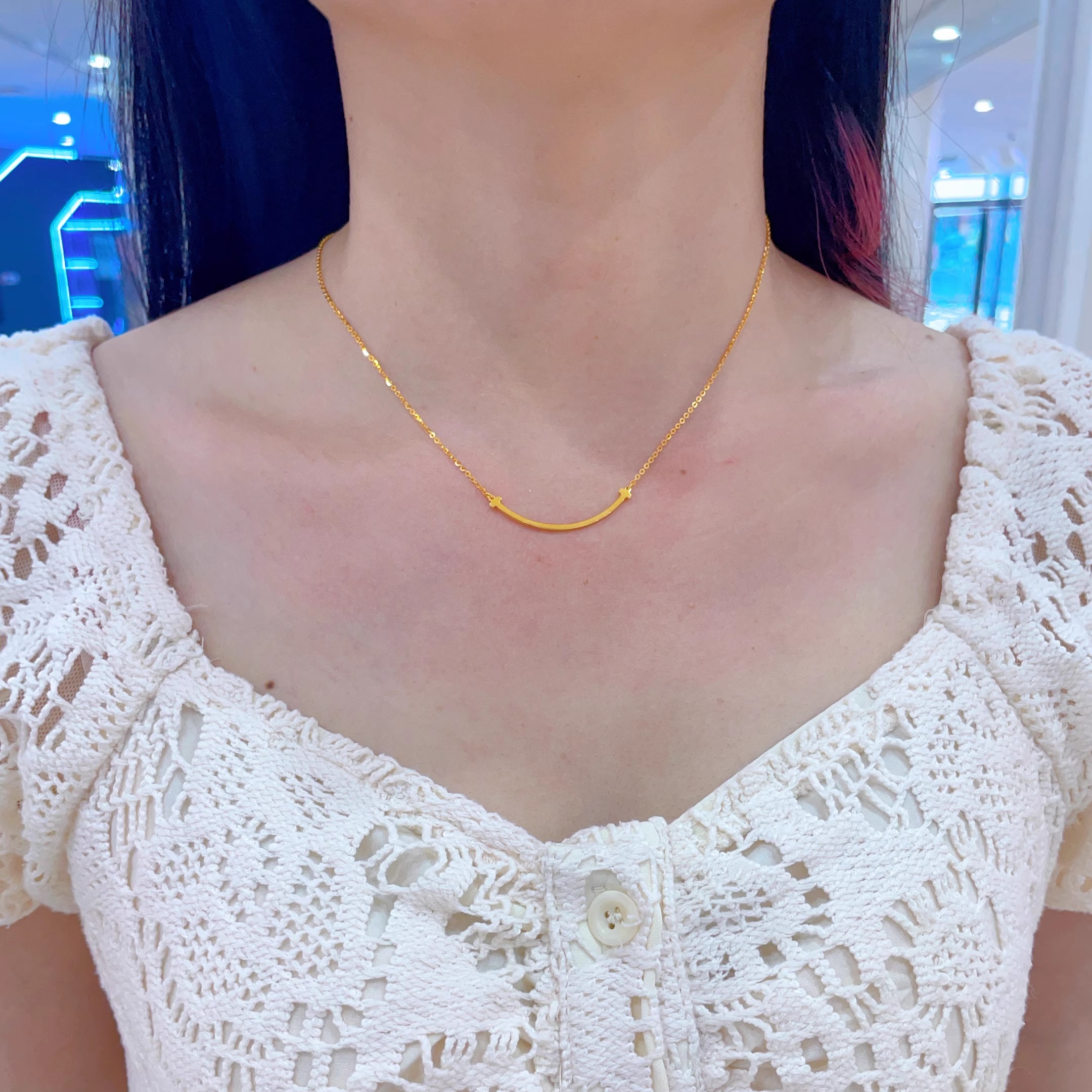 金包银项链新款微笑时尚素链女生轻奢锁骨链5G工艺套链表白送女友