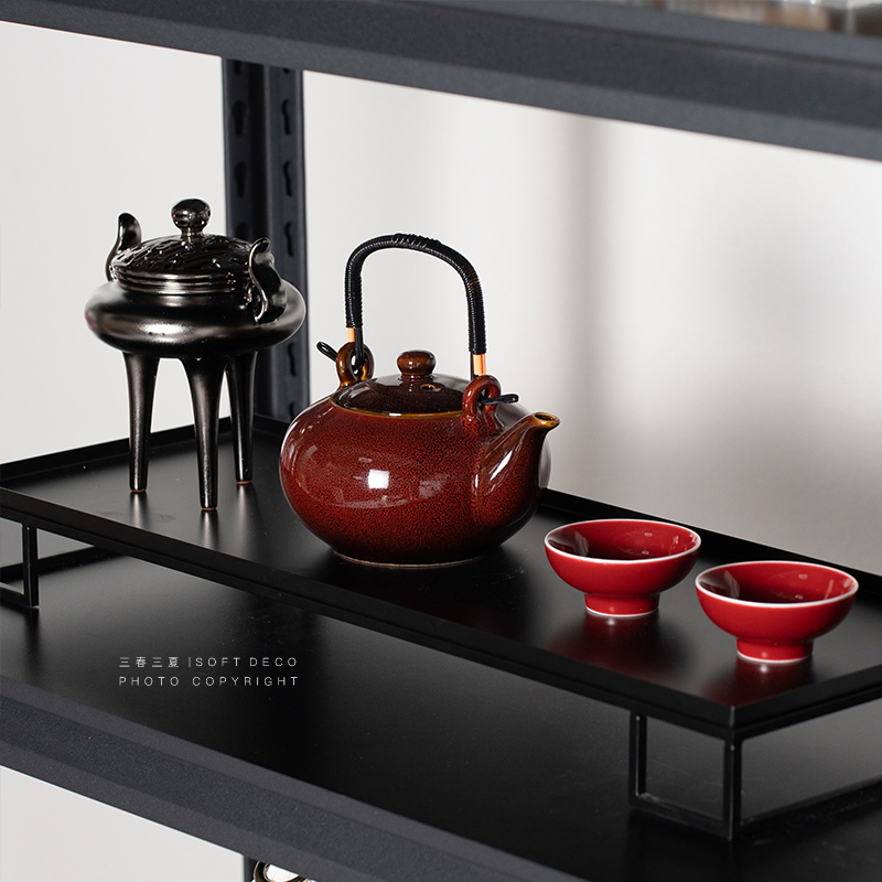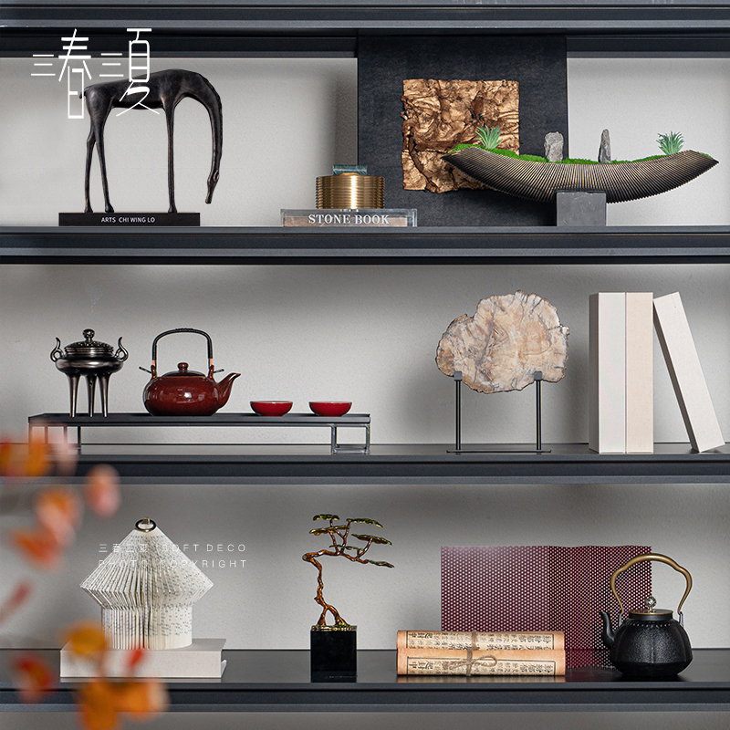 新中式书柜书架装饰摆件茶室茶柜博古架展示柜样板间书房软装饰品