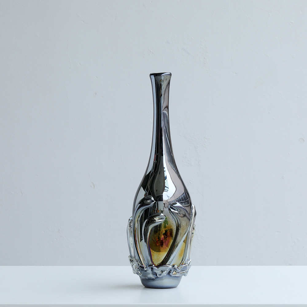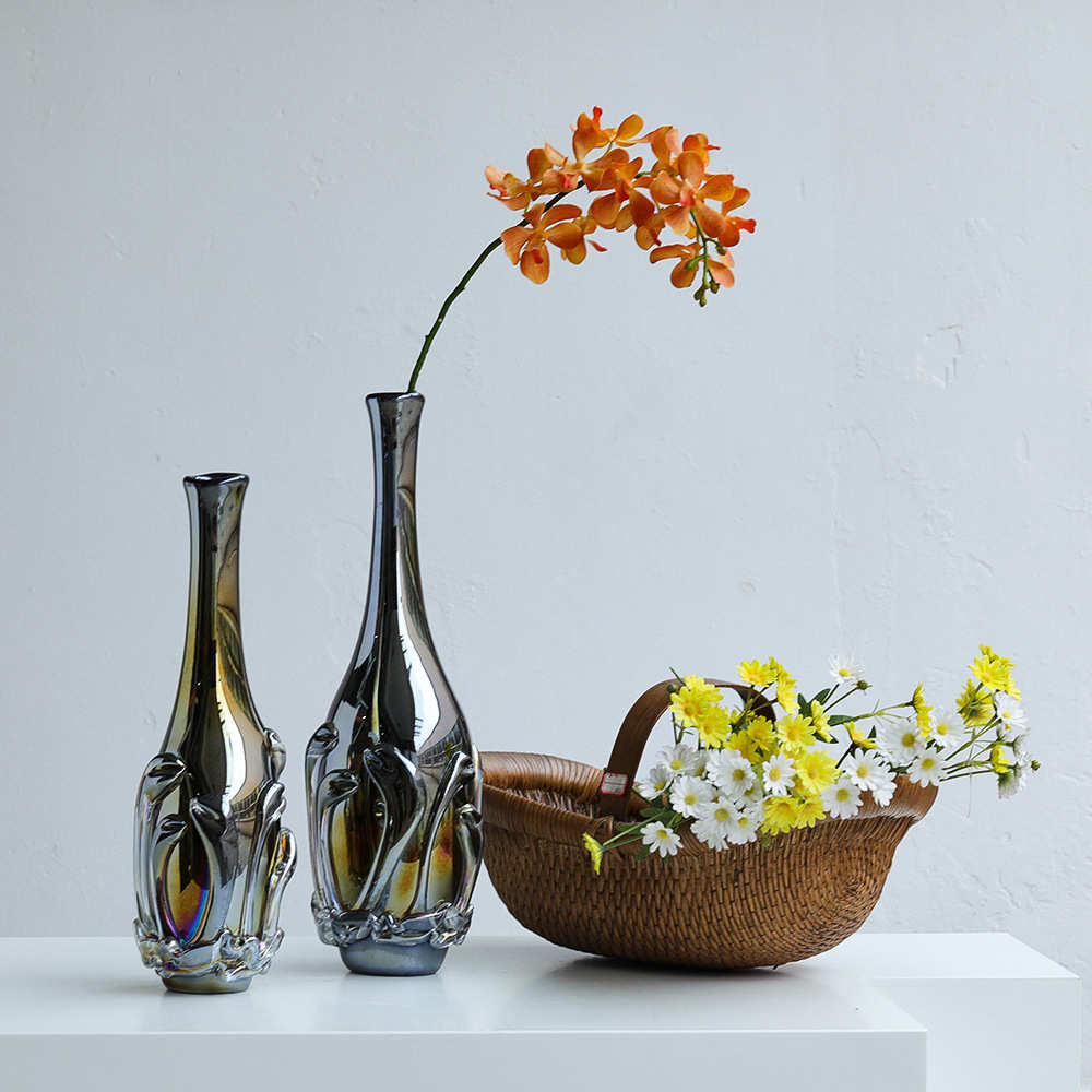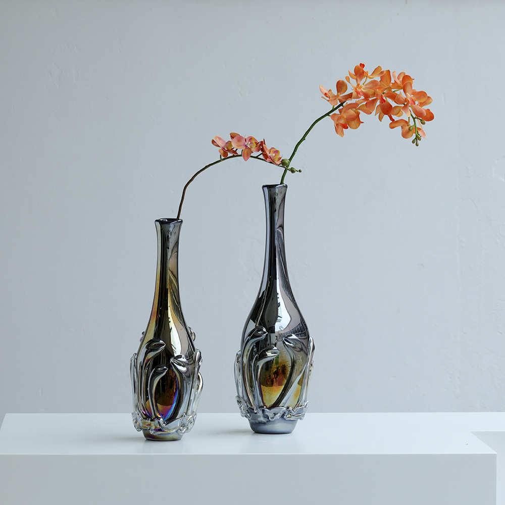 复古饰品落地设计师厚重简约玻璃花瓶高端软装装大气电镀大号摆件