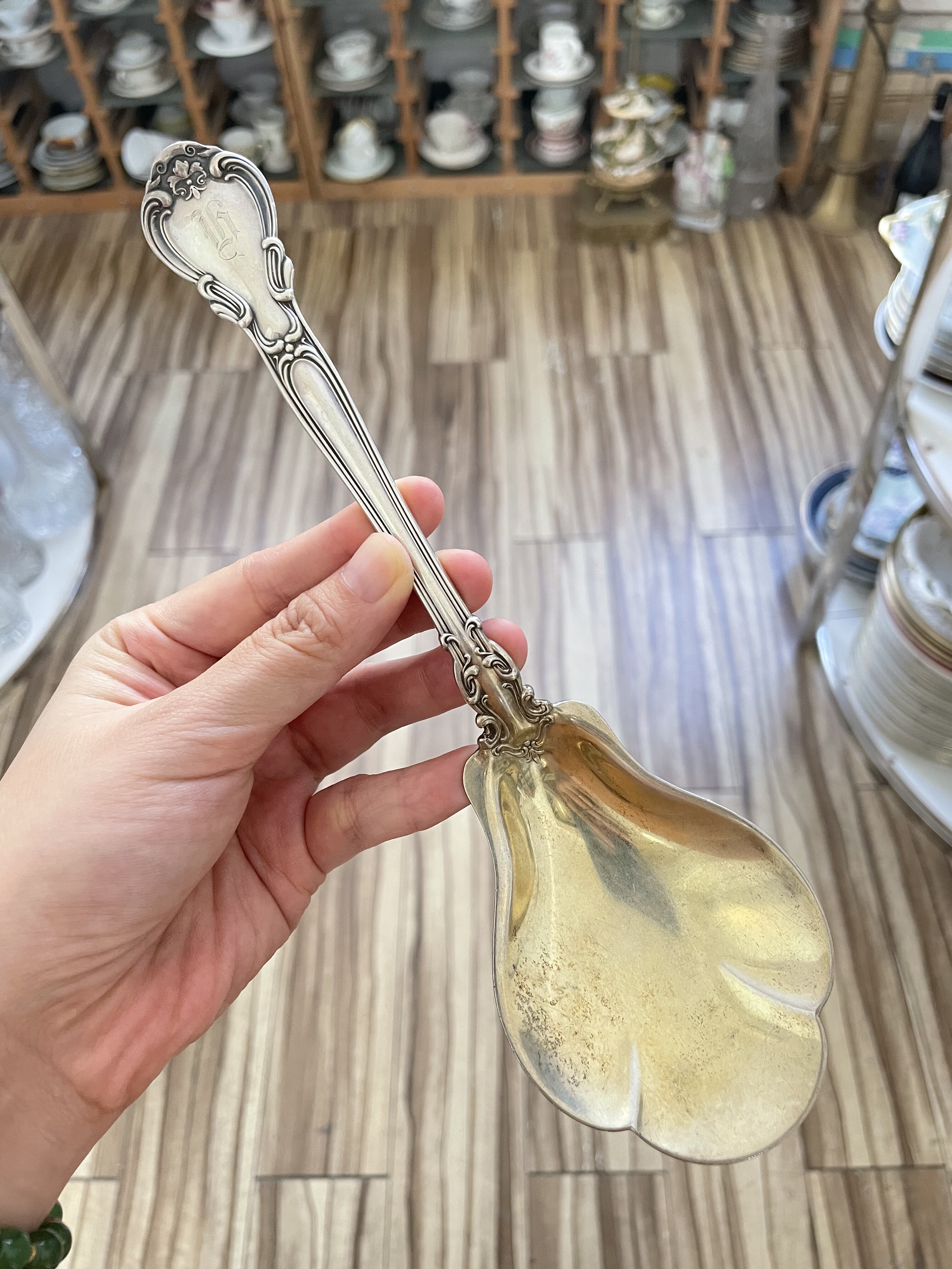 美国中古纯银大号异形设计感分餐勺沙拉勺