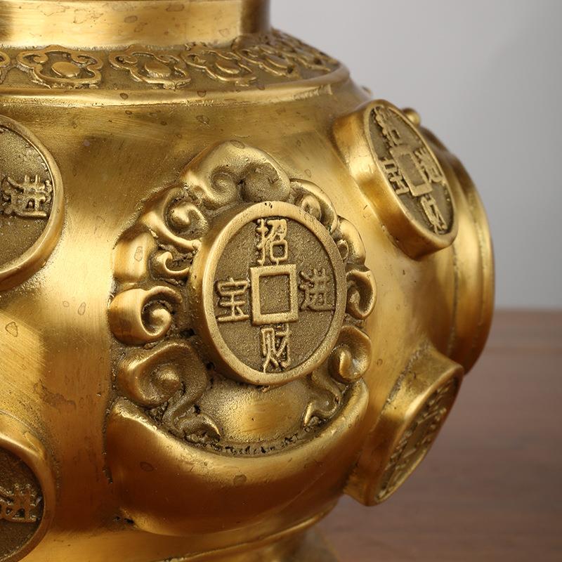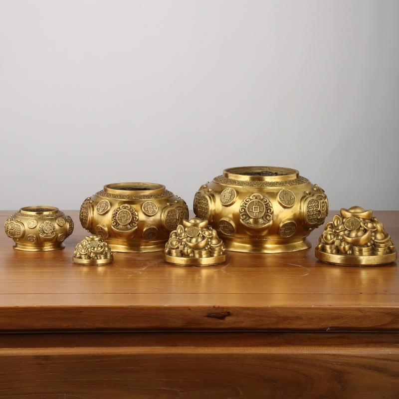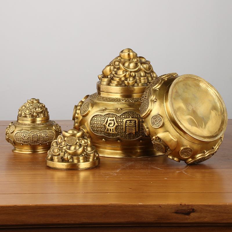 黄铜聚宝盆摆件带盖聚宝盆店铺家居办公室吉祥摆件定制