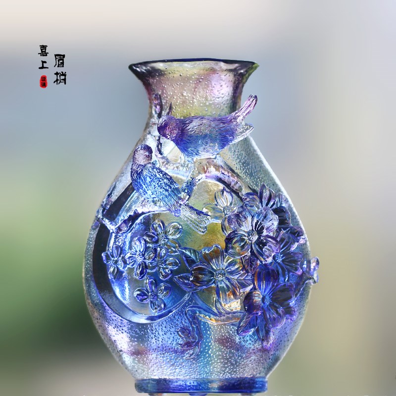 琉璃喜上眉梢花瓶喜鹊摆件居家卧室客厅软装摆放前台桌面装饰送礼