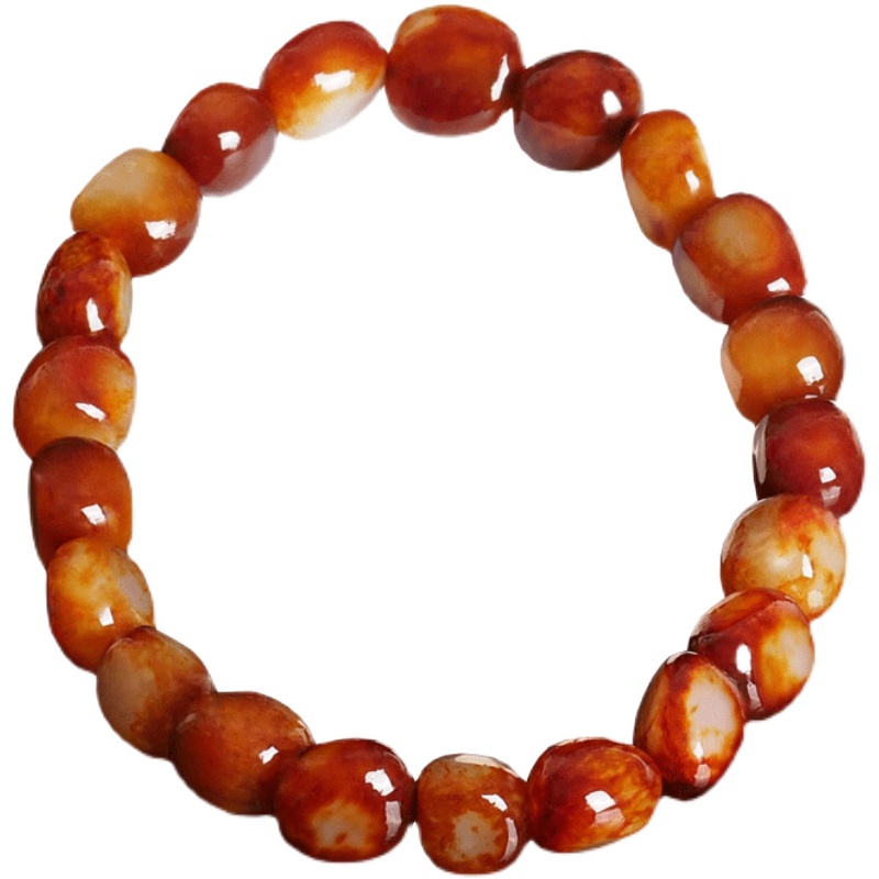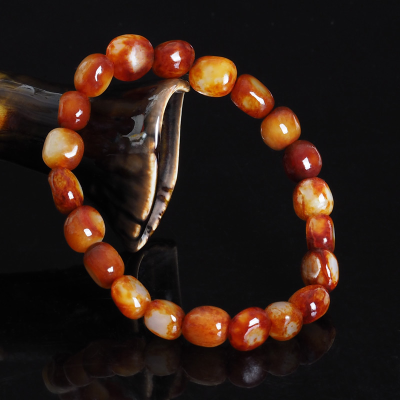 新疆和田玉籽料原石手链8MM单圈红皮白肉红沁手串男女款支持定制