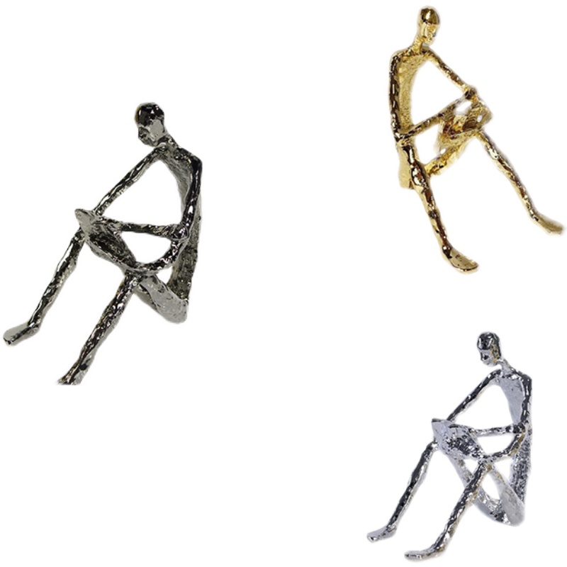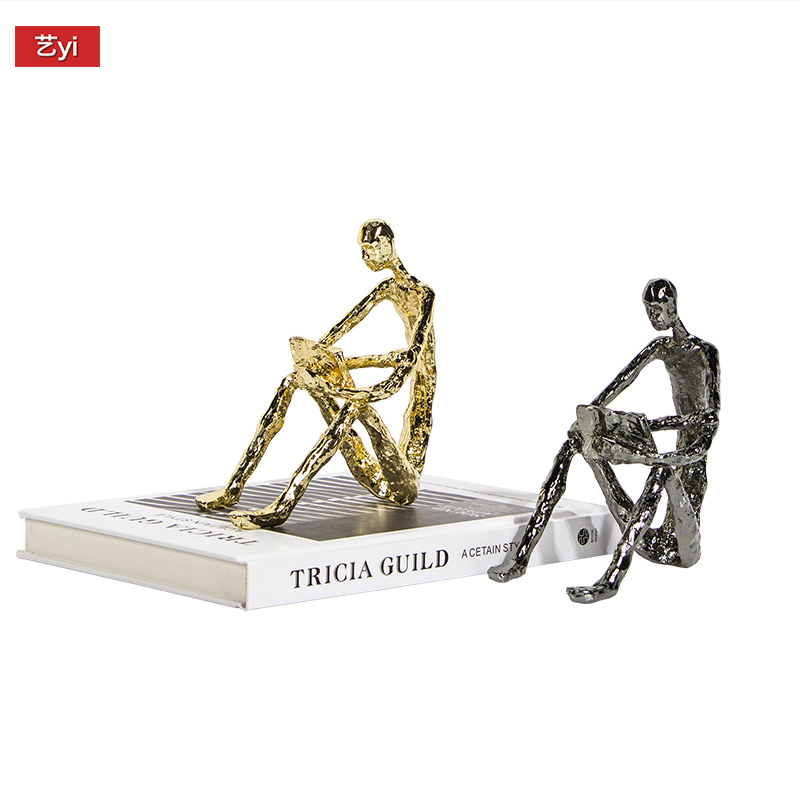 现代简约抽象金属看书人物雕塑人摆件售楼处样板间桌面书房工艺品
