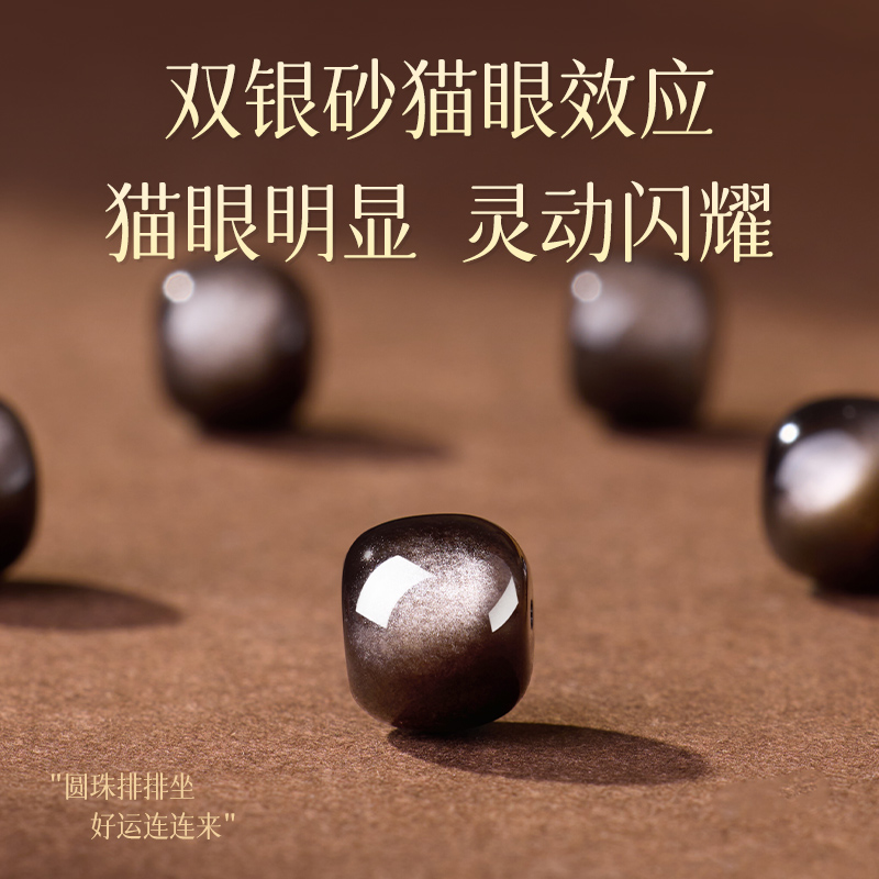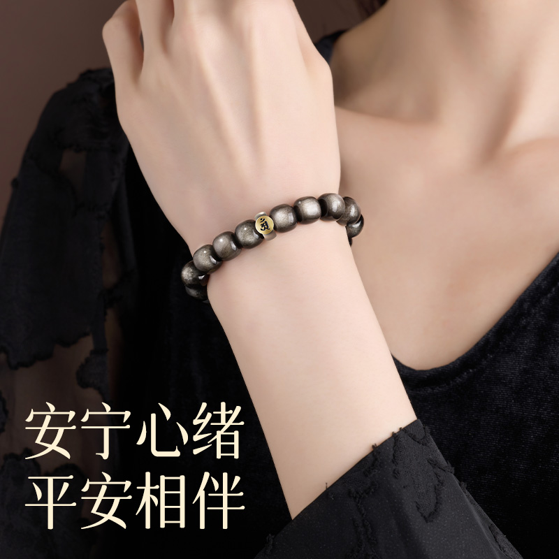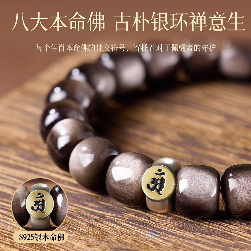 天然黑曜石手串官方旗舰店正品生肖本命佛银曜石手链桶珠转运珠