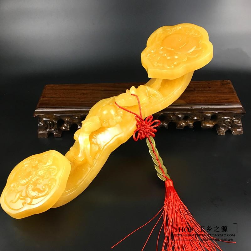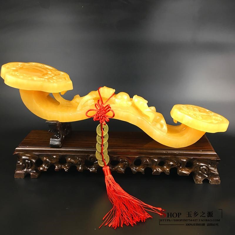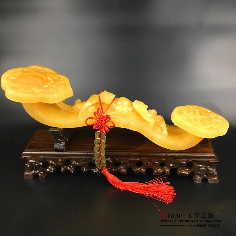 现货速发玉石黄如意摆件家居客厅酒柜办公室乔迁新居商务装饰礼品