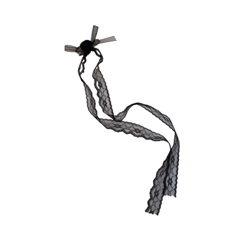 气质性感黑色蕾丝长款布艺项链纯欲风蝴蝶结锁骨链女颈带腰链多用