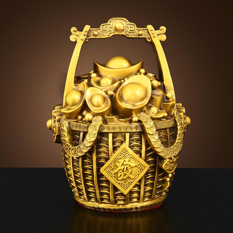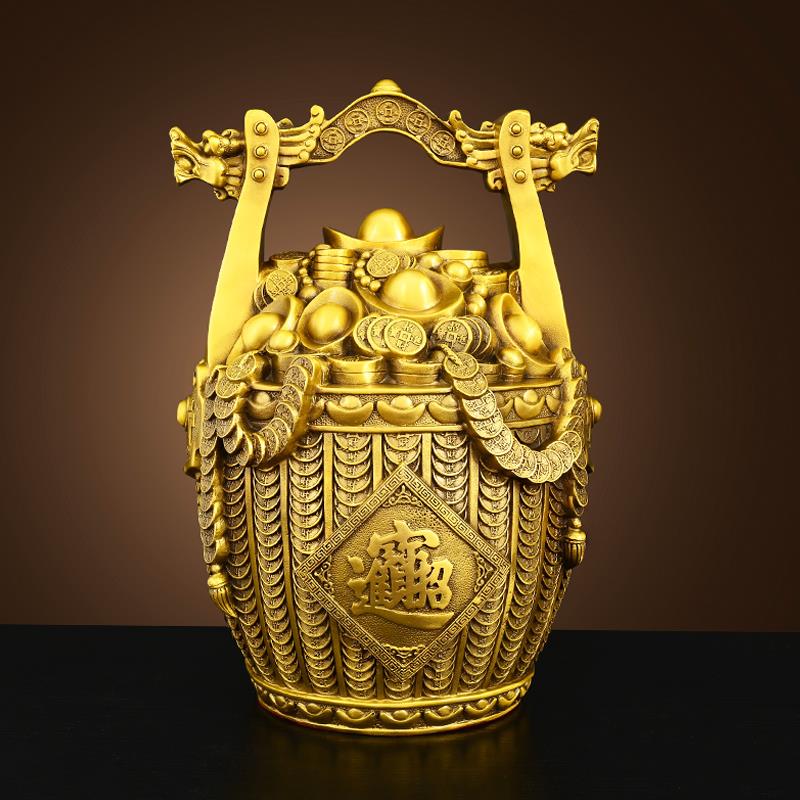 铜一桶金摆件招聚来财宝客厅店铺开业礼品家居装饰品纯黄铜存钱罐