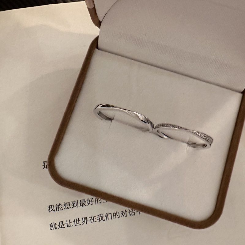 鑫葆康 活口戒指足银925银细排钻莫比乌斯情侣对戒 纯银戒