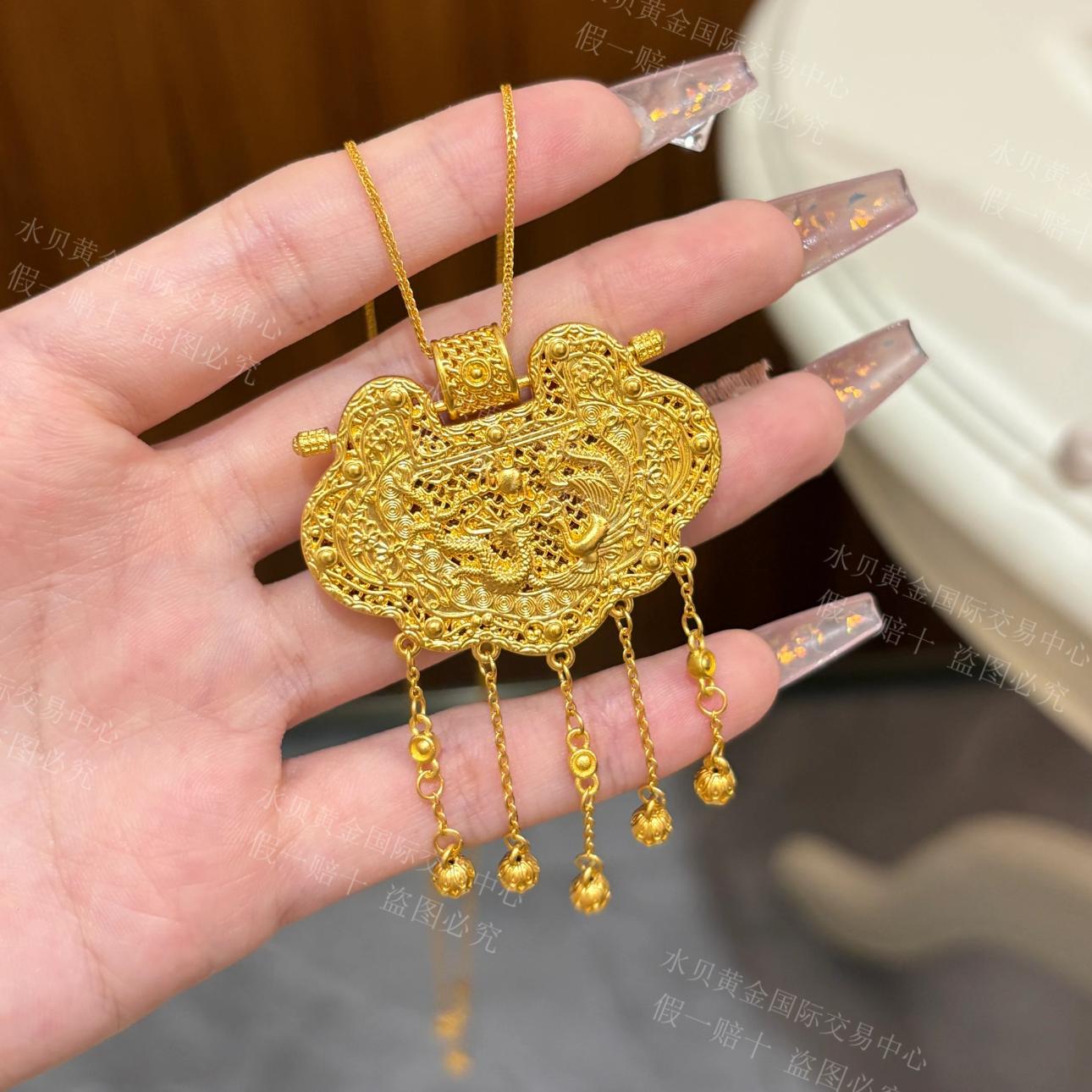 金店同款金包银花丝镶嵌天子门生锁包吊坠项链龙凤呈祥锁婚嫁女