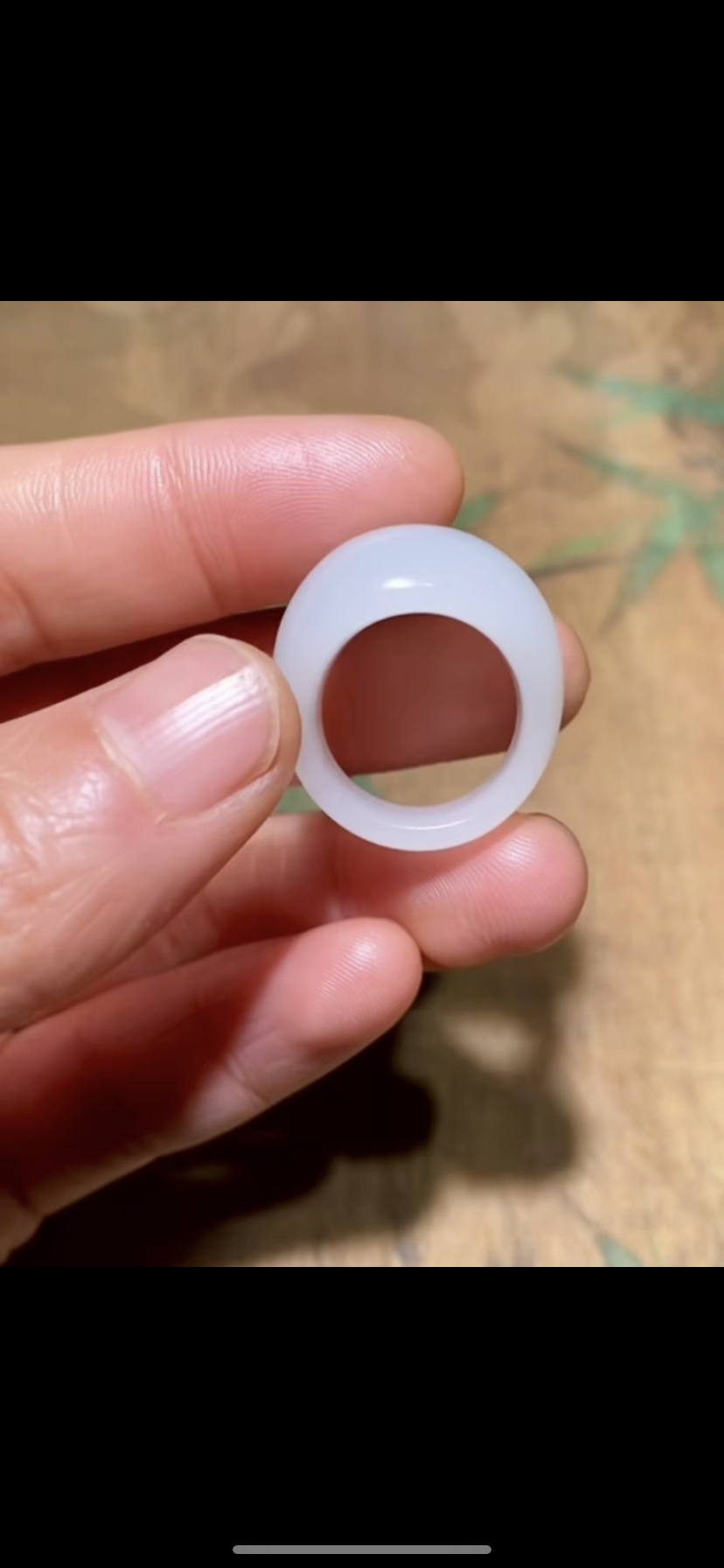 精品新疆和田玉籽料 面包戒指 一级白油性脂粉好 玉种老糯 16.3mm