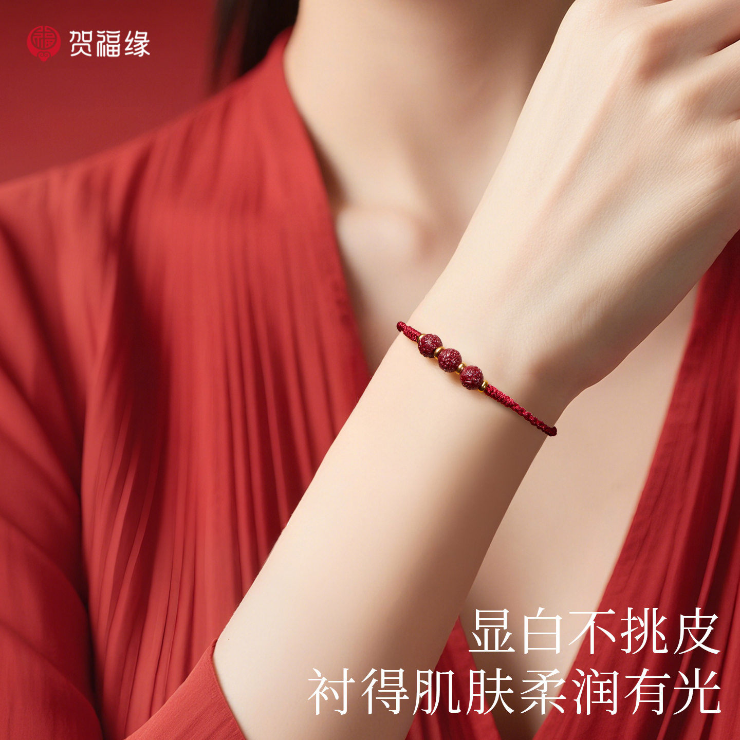 贺福缘朱砂转运珠手绳手工编织红色手链本命年护身符2026马年红绳