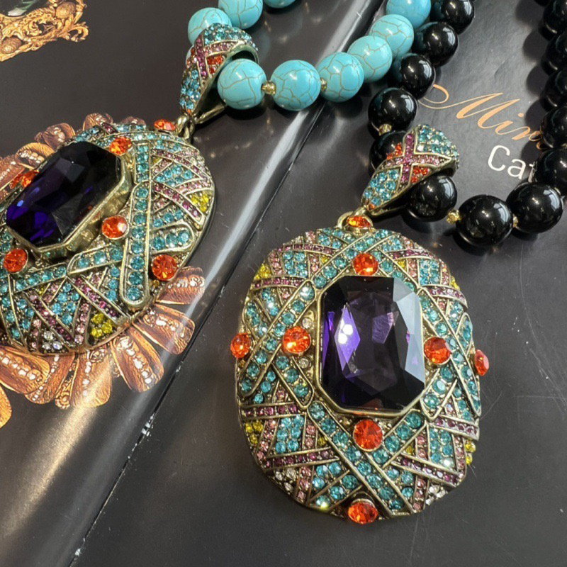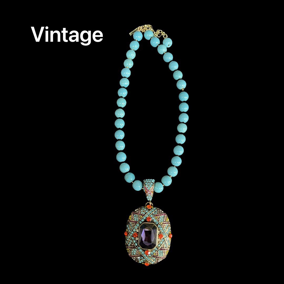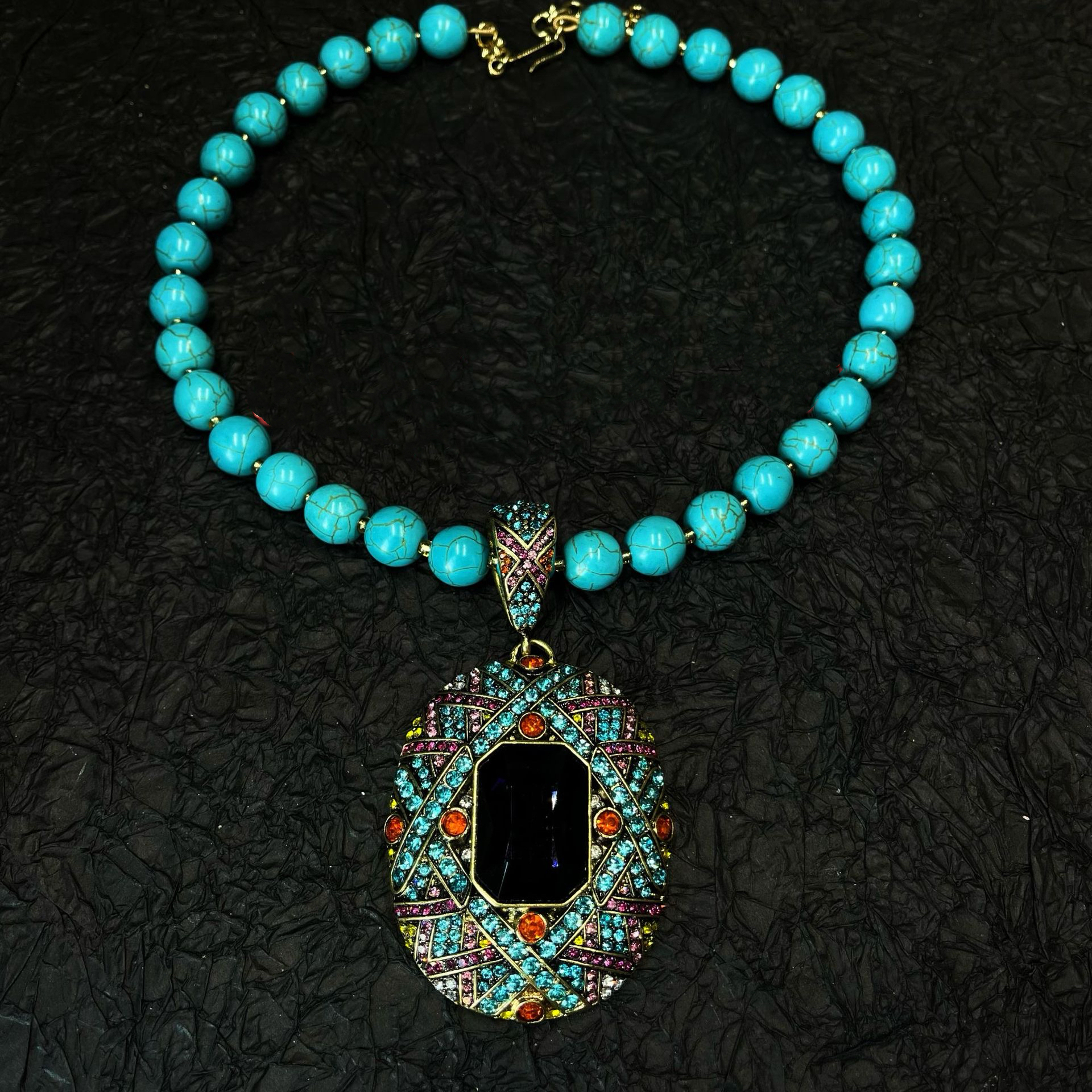 中古饰品蓝色方形松莱茵石项链欧美复古夸张大钻民族风项链