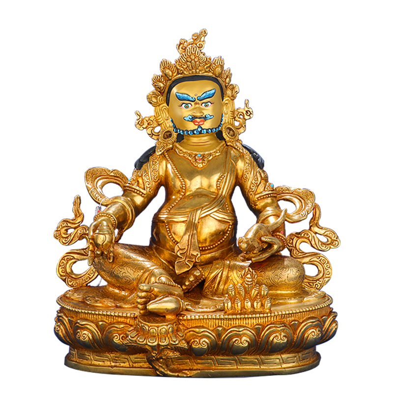 黄财神佛像摆件尼泊尔手工纯铜全鎏金10寸藏密宗赞巴拉财神爷佛像