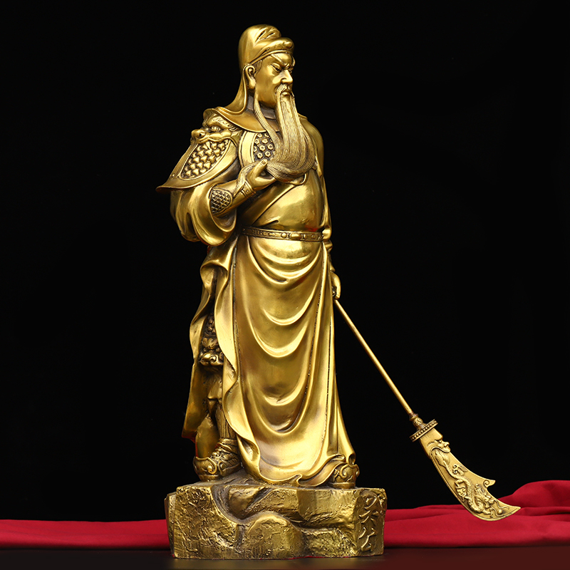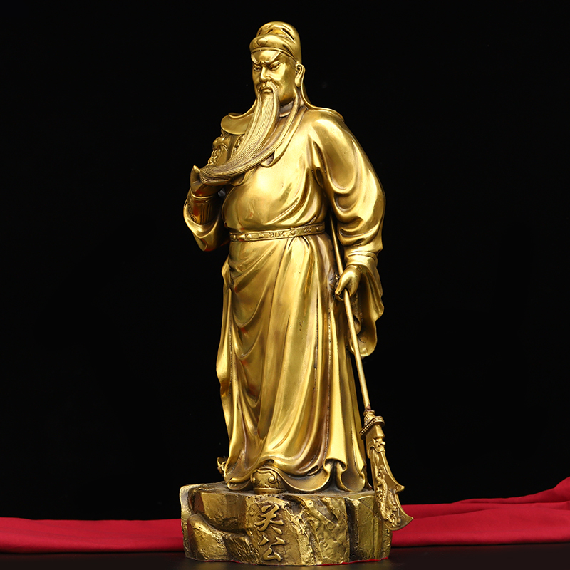 黄铜关公铜像摆件提刀关公武财神关羽关二爷站像家居客厅镇宅摆件