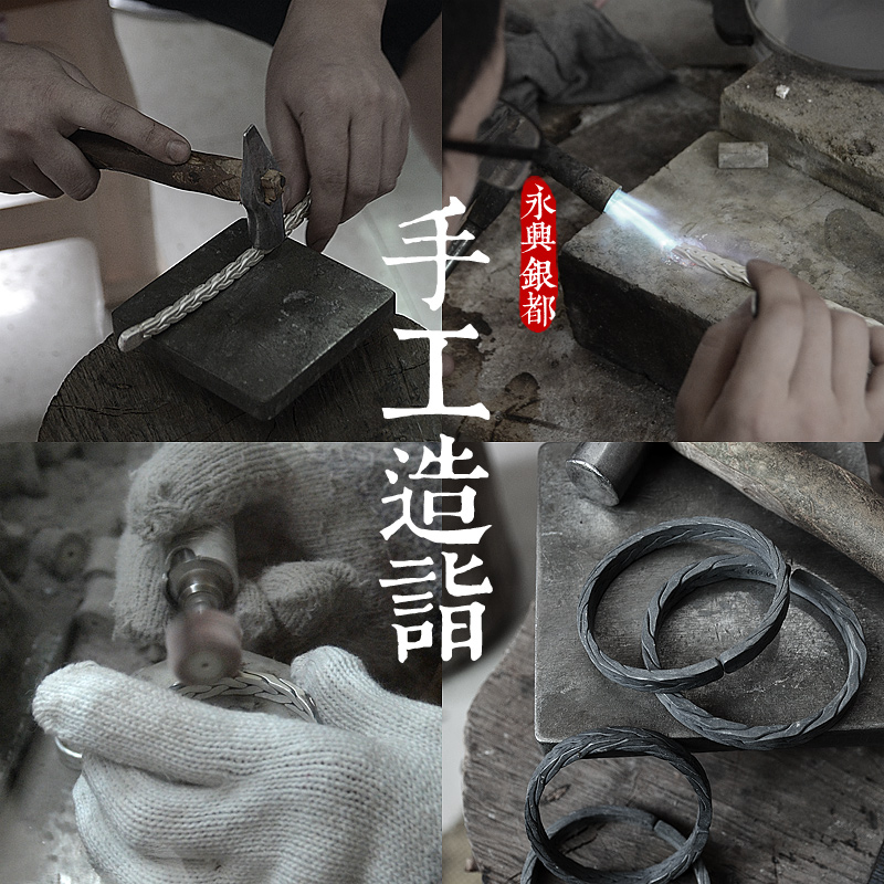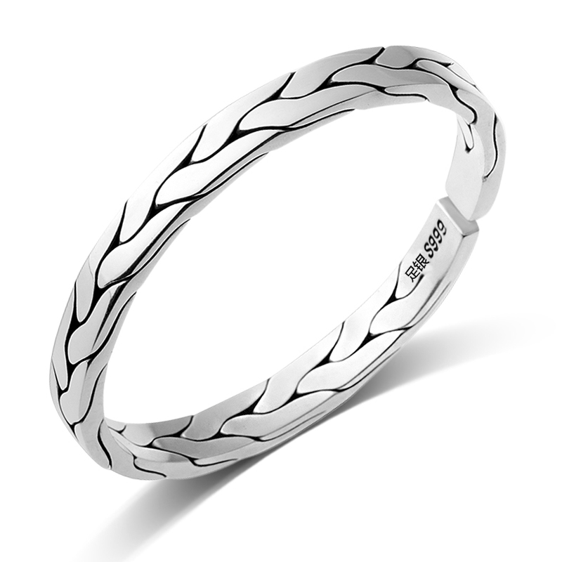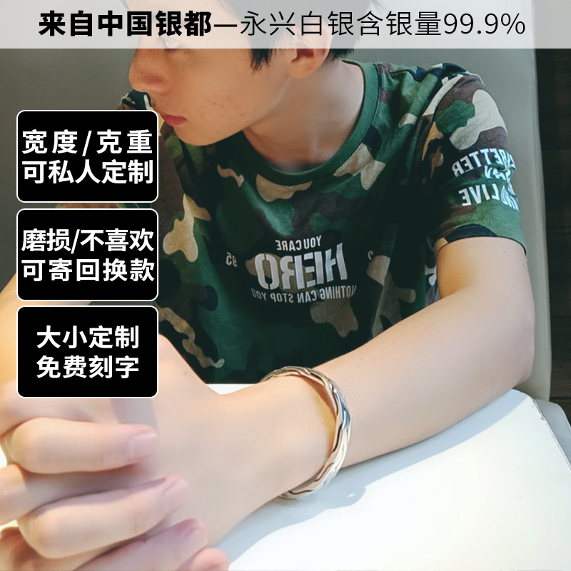 永兴银楼原创手工纯银麻花编织男士男生手镯男款开口实心男银镯子