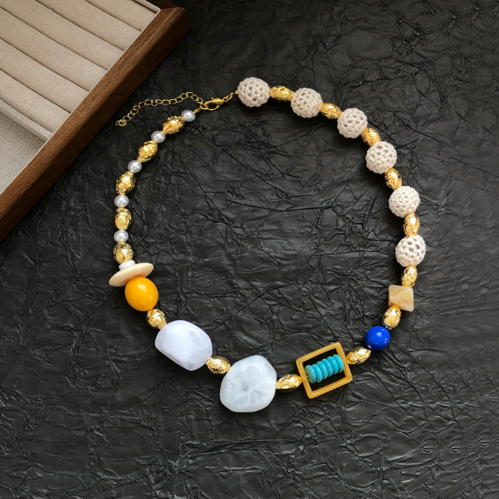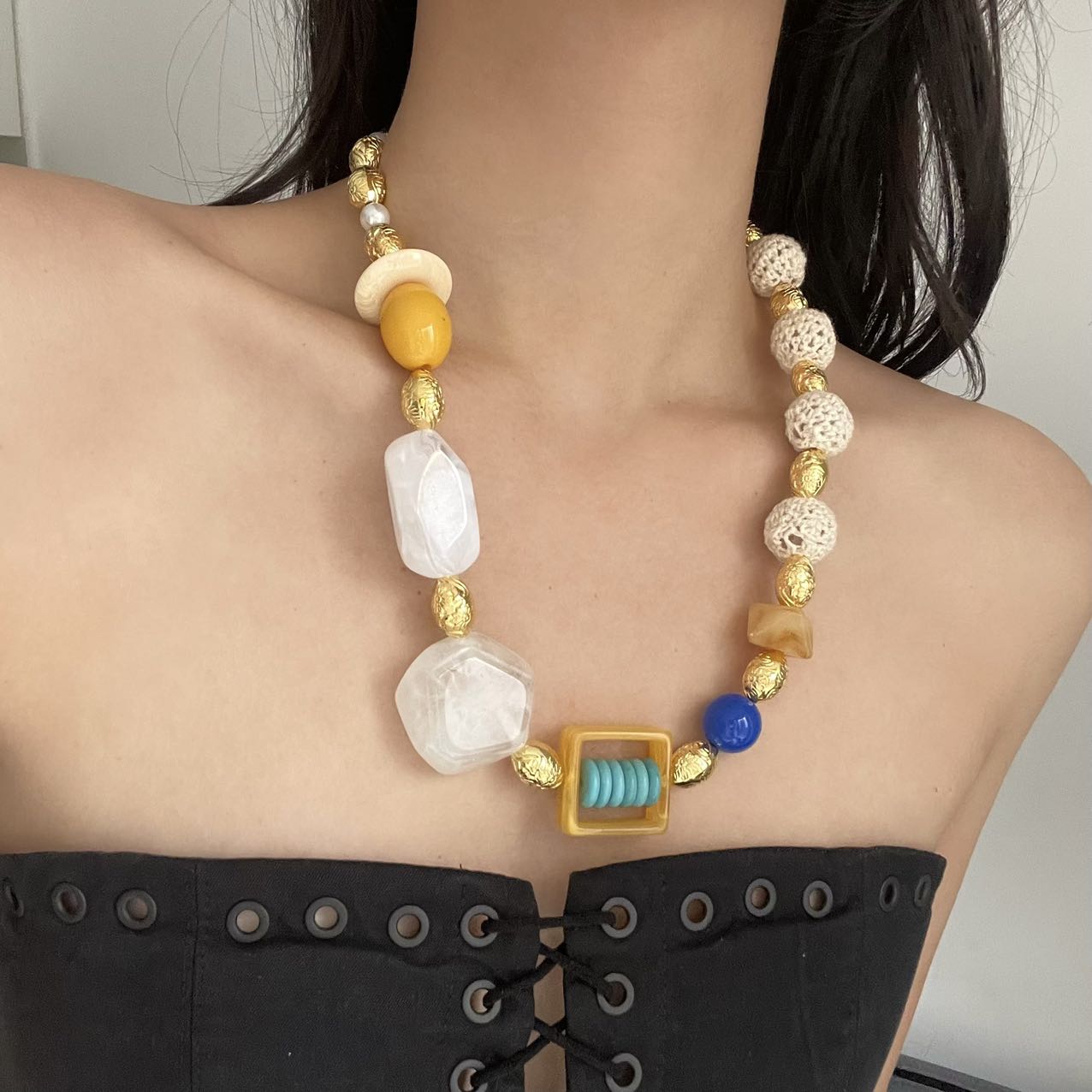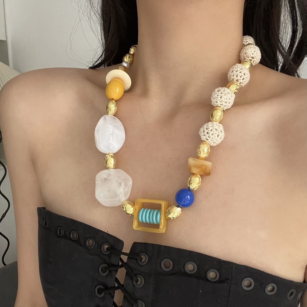 复古宫廷风树脂鎏金多元素串珠项链女轻奢高级感夸张民族风锁骨链