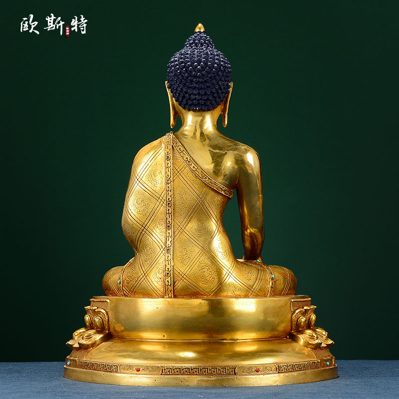 欧斯特 阿弥陀佛中式摆件 仿尼泊尔铜全鎏金家居三世佛铜像10寸