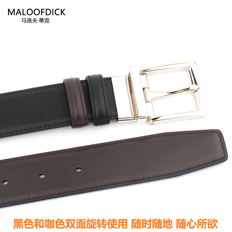MALOOFDICK马洛夫蒂克双面旋转铜针扣裤腰带商务休闲款牛皮皮带男