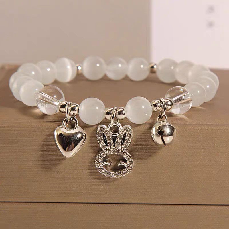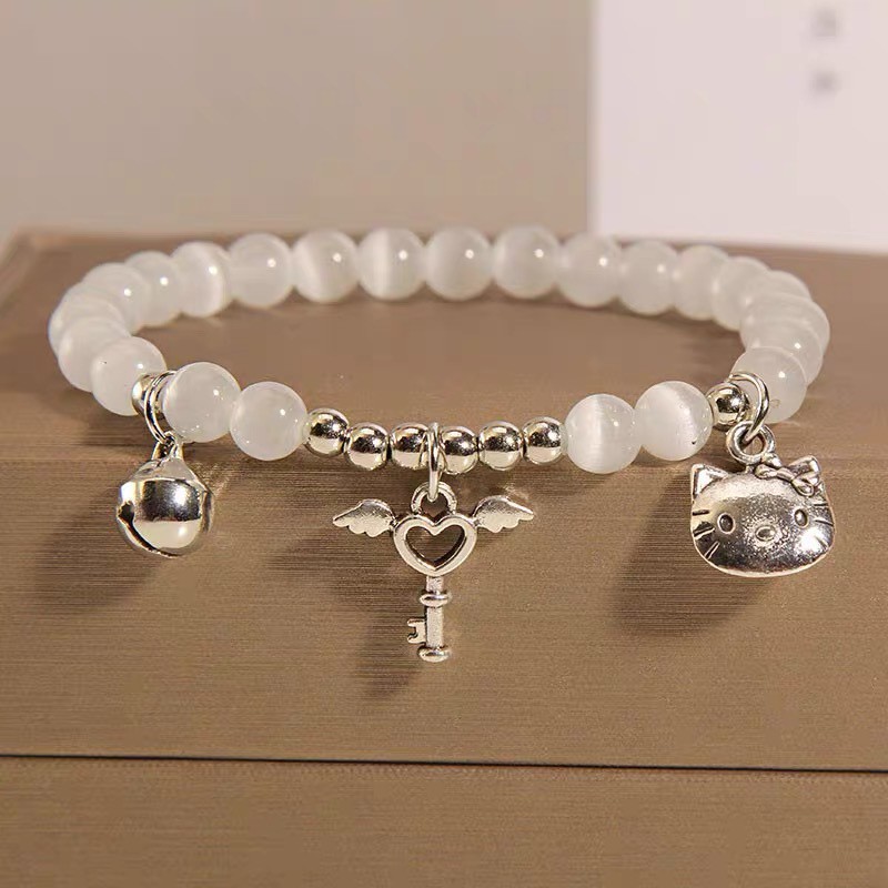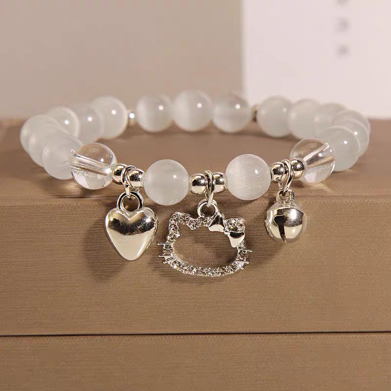 kt猫猫爱心diy铃铛手链女手工串珠猫眼石闺蜜手环送女友礼物学生