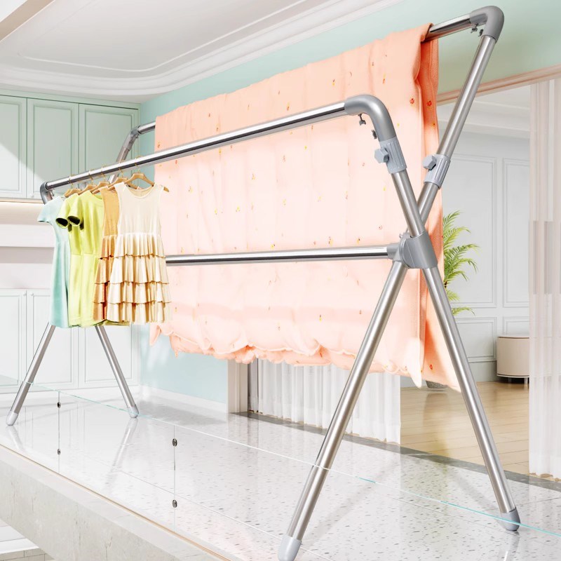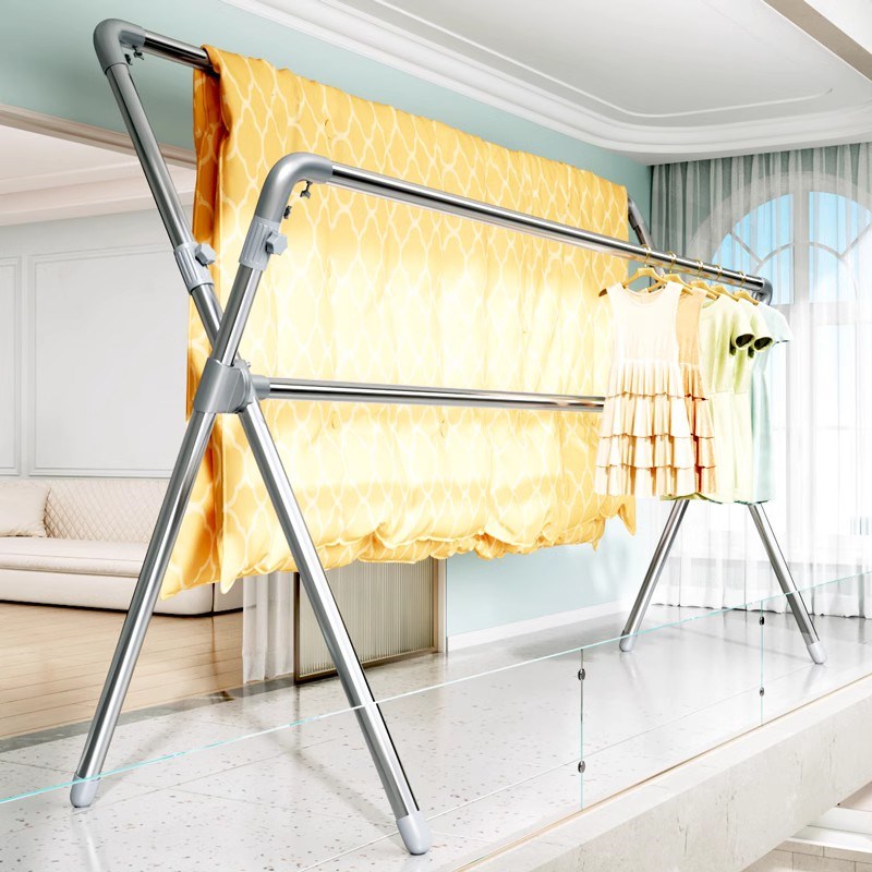 伸缩晾衣架落地折叠室内外家用阳台不锈钢伸缩升降晒被子晾衣神器