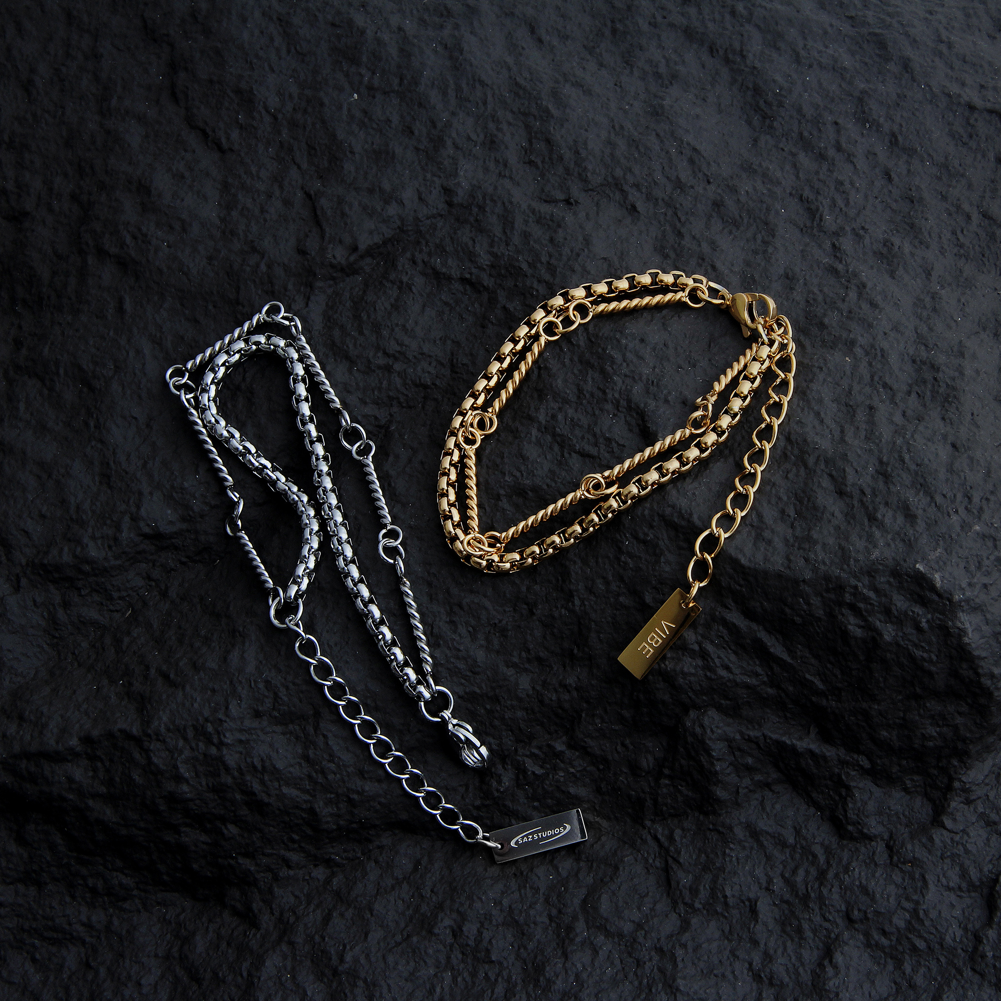 SAZ日潮复古2024新款双层钛钢手链男潮ins轻奢小众简约高级感手饰
