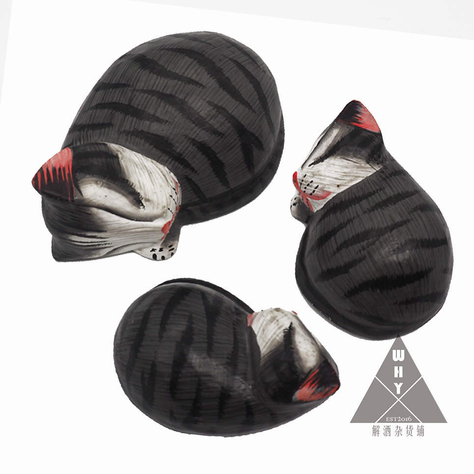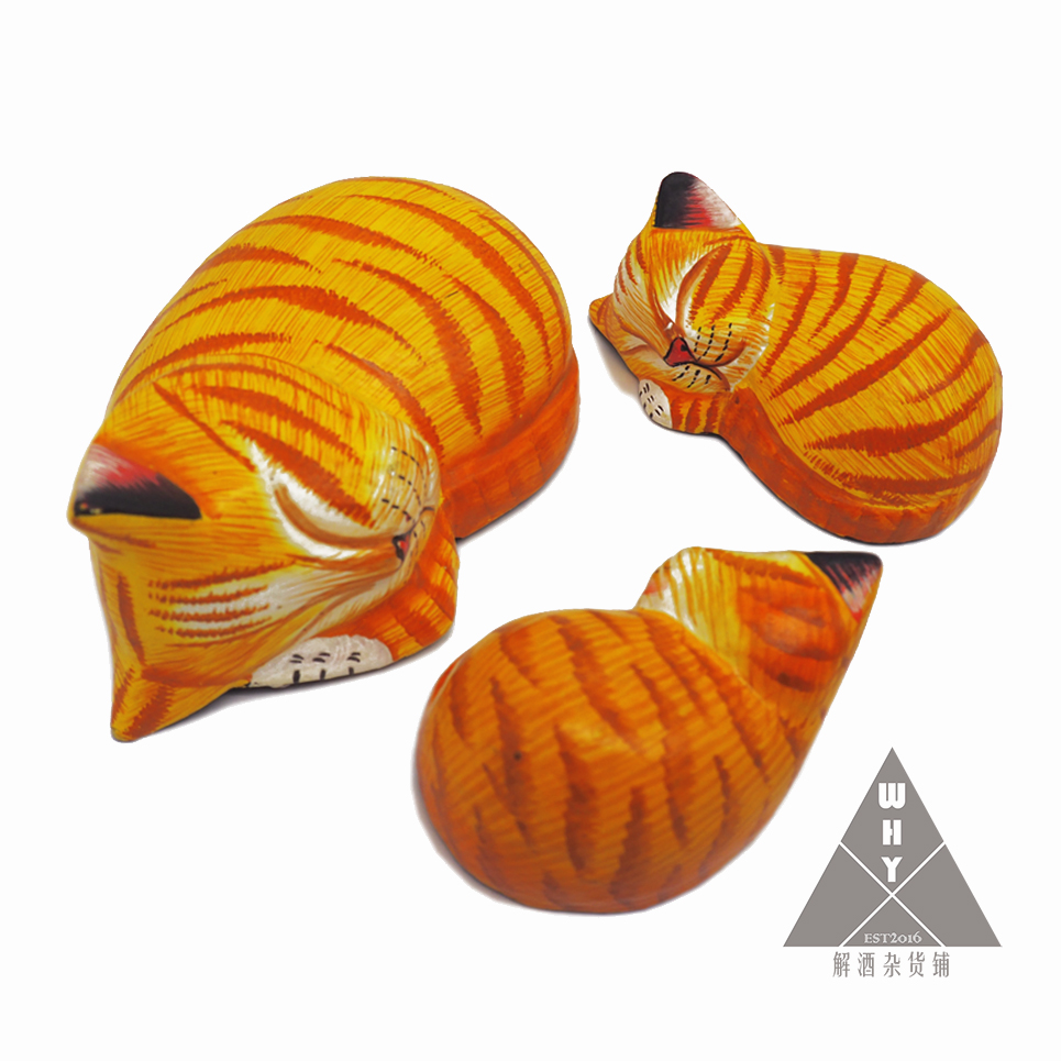 实木手绘小猫咪工艺品趴睡猫咪摆件