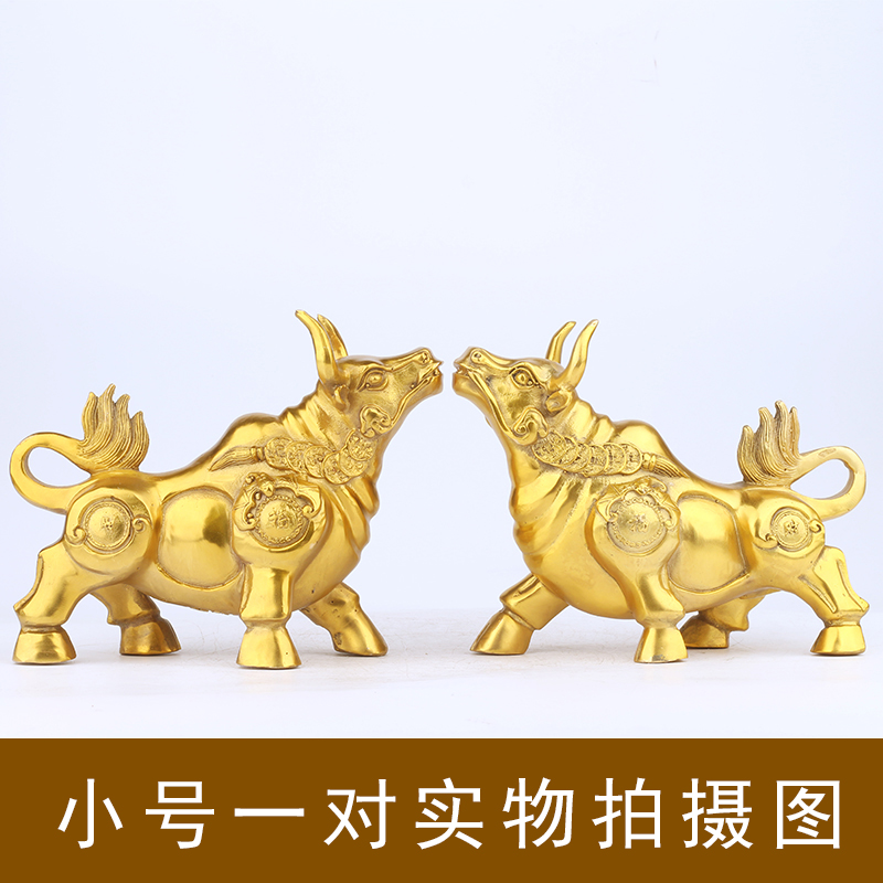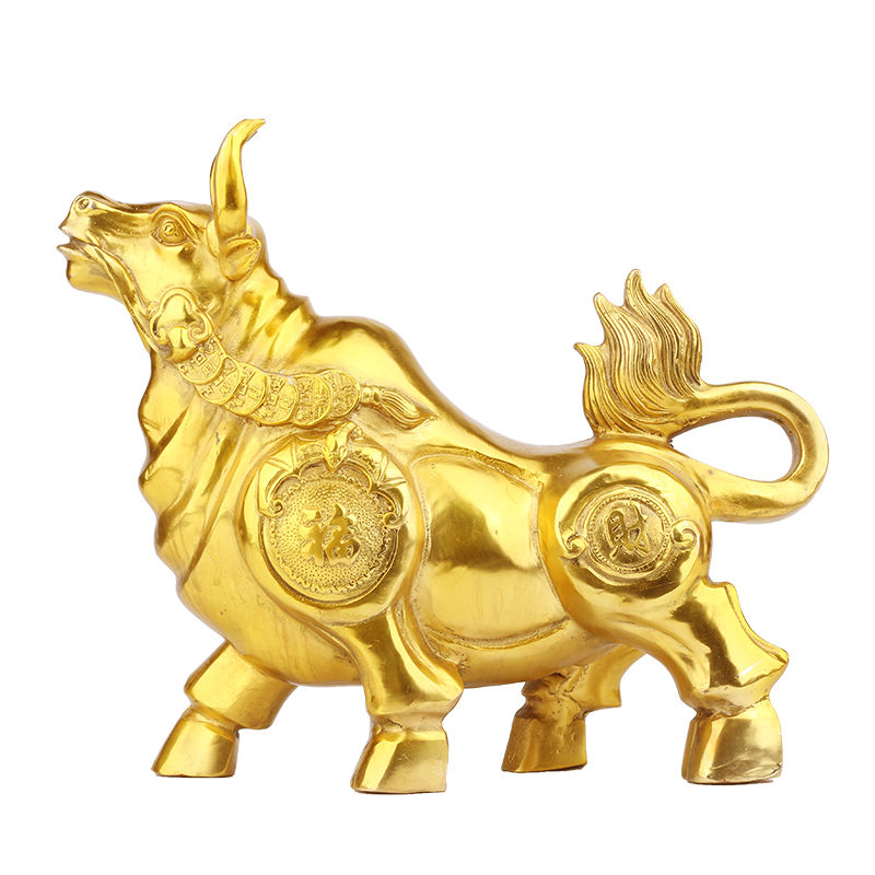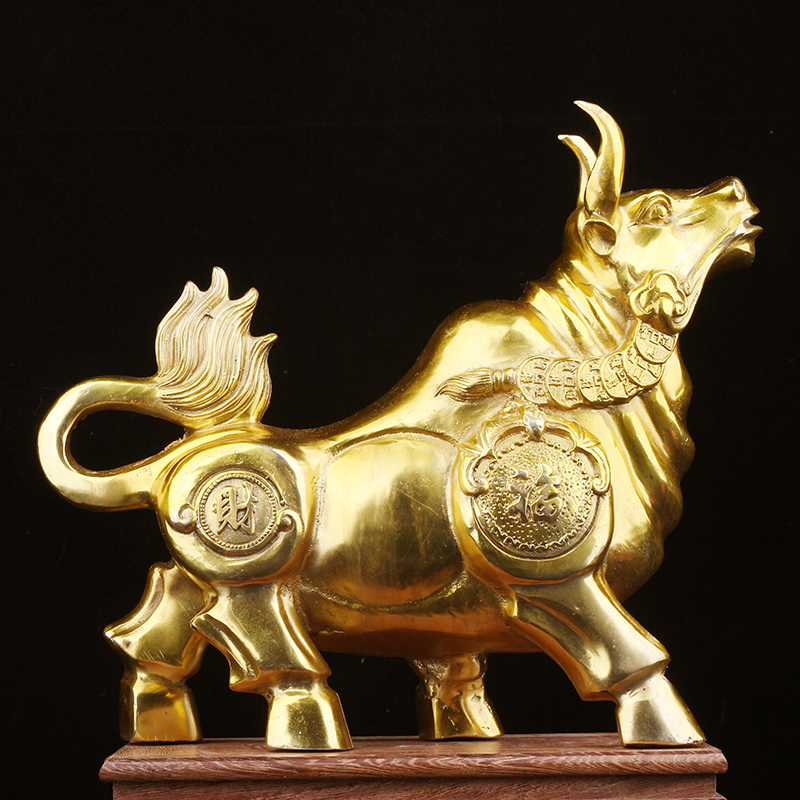 黄铜大号如意金钱牛 牛气冲天摆件 铜牛生肖牛中式桌面华尔街牛福