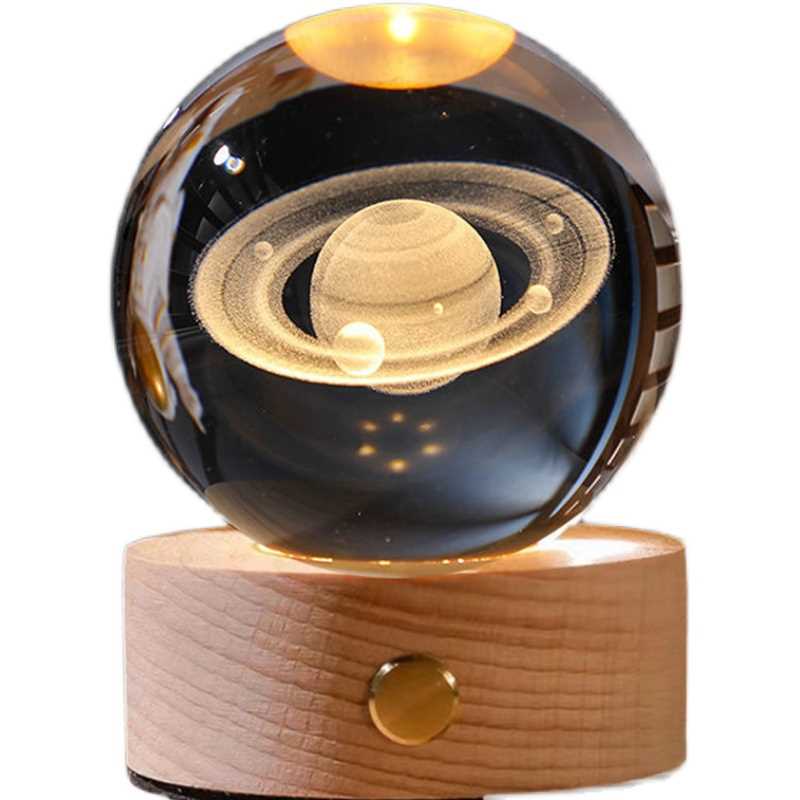 情人节创意发光太阳系水晶球充电小夜灯卧室桌面装饰摆件生日礼物